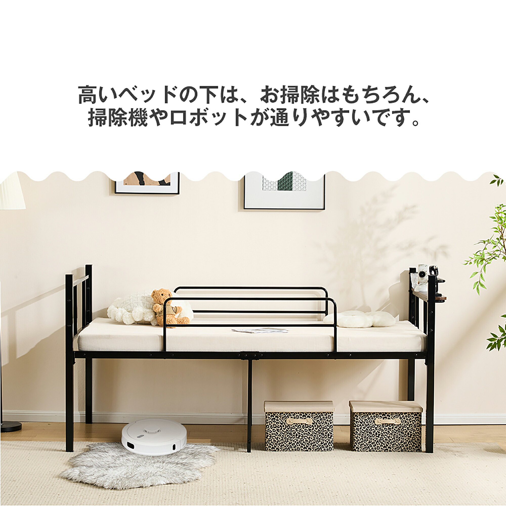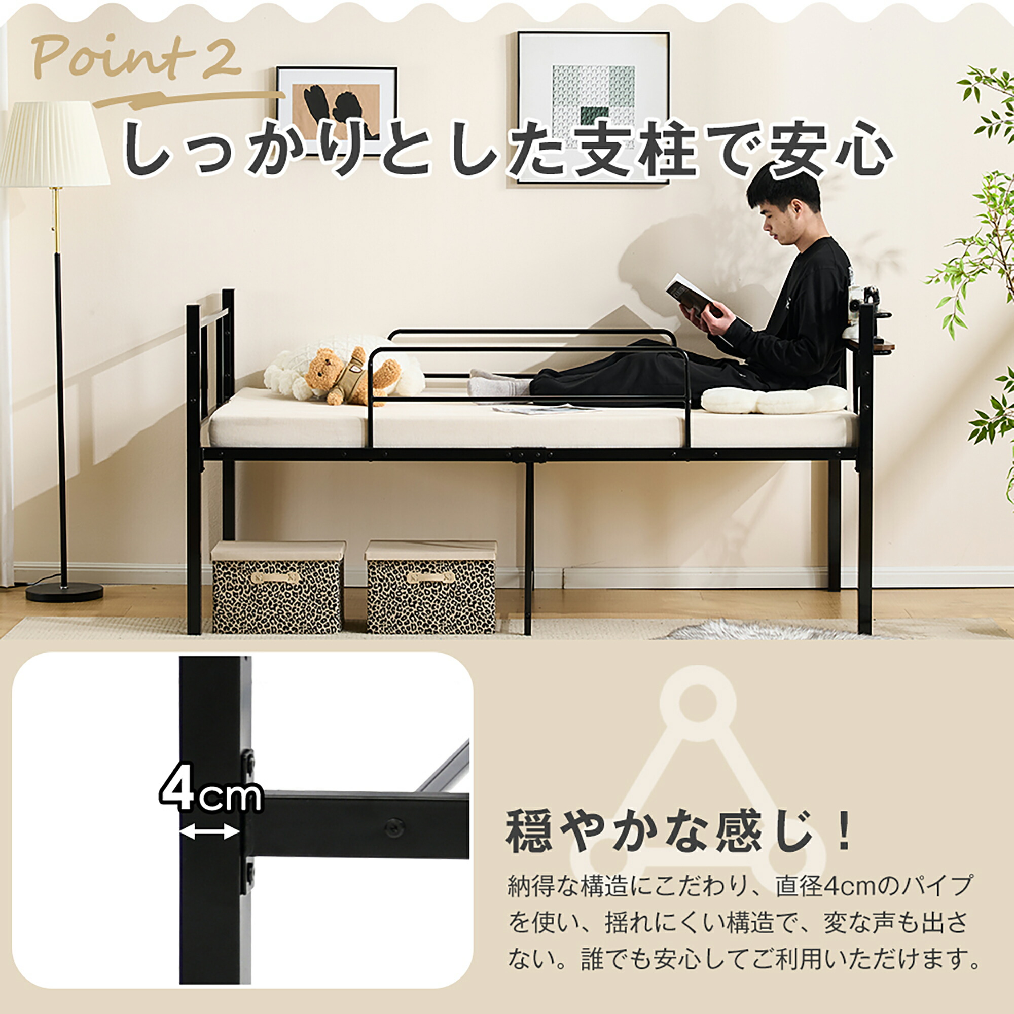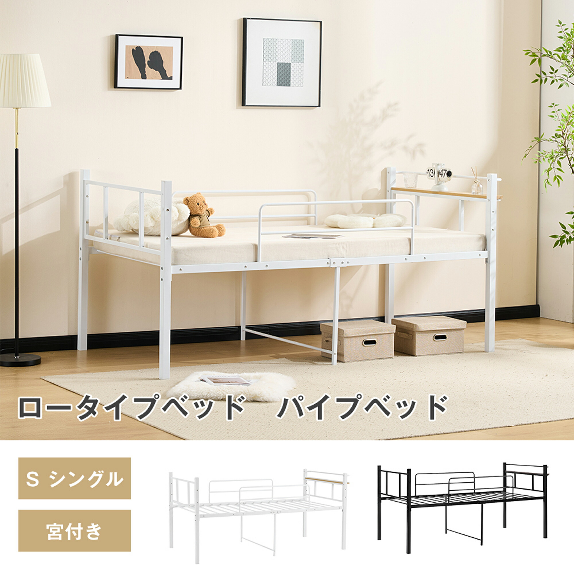 パイプベッド シングル ベッド 宮 ロ ブラック ホワイト