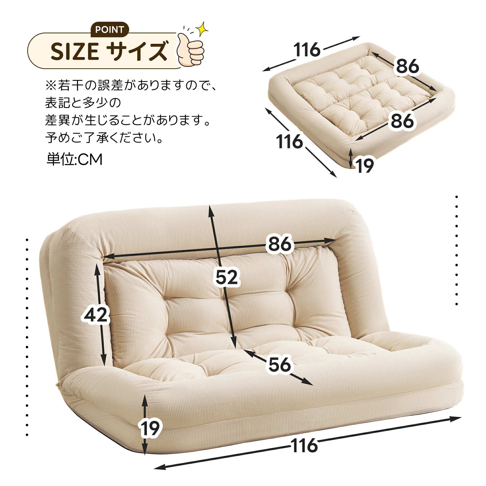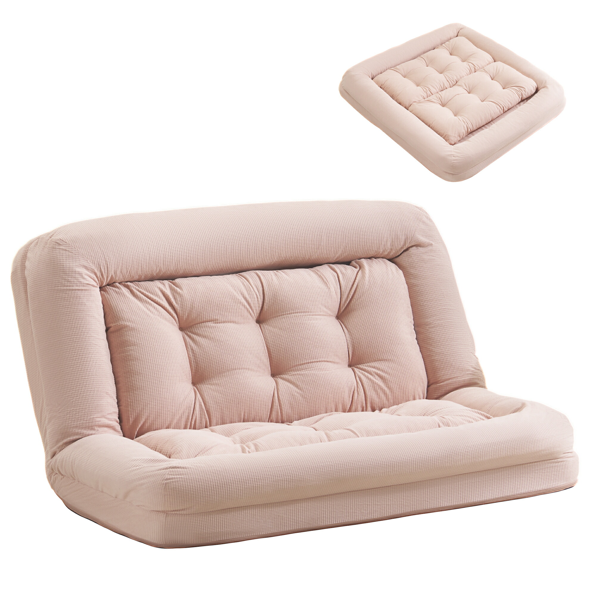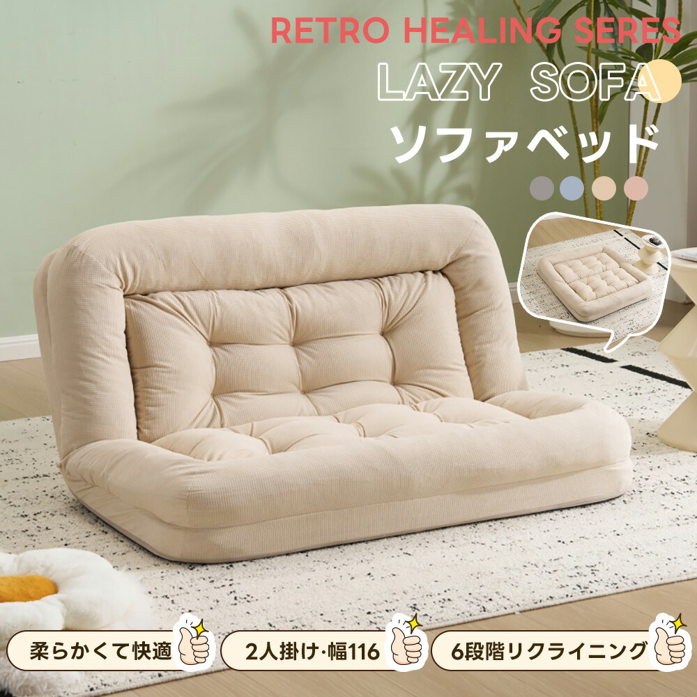 ソファベッド 2人掛け 一体型 折りた アイボリー グレー ブルー ピンク