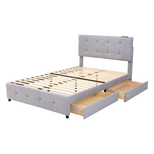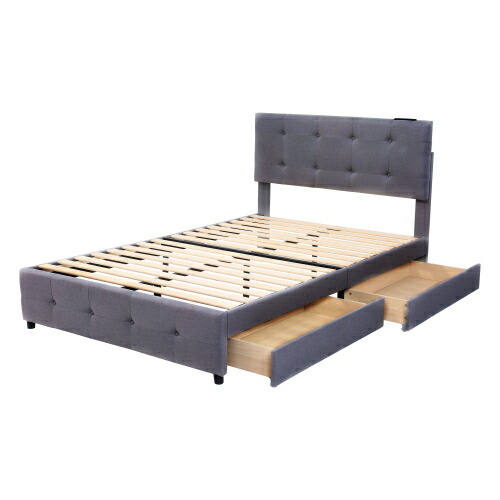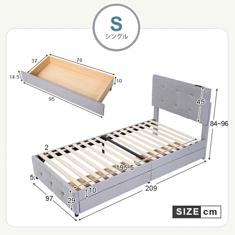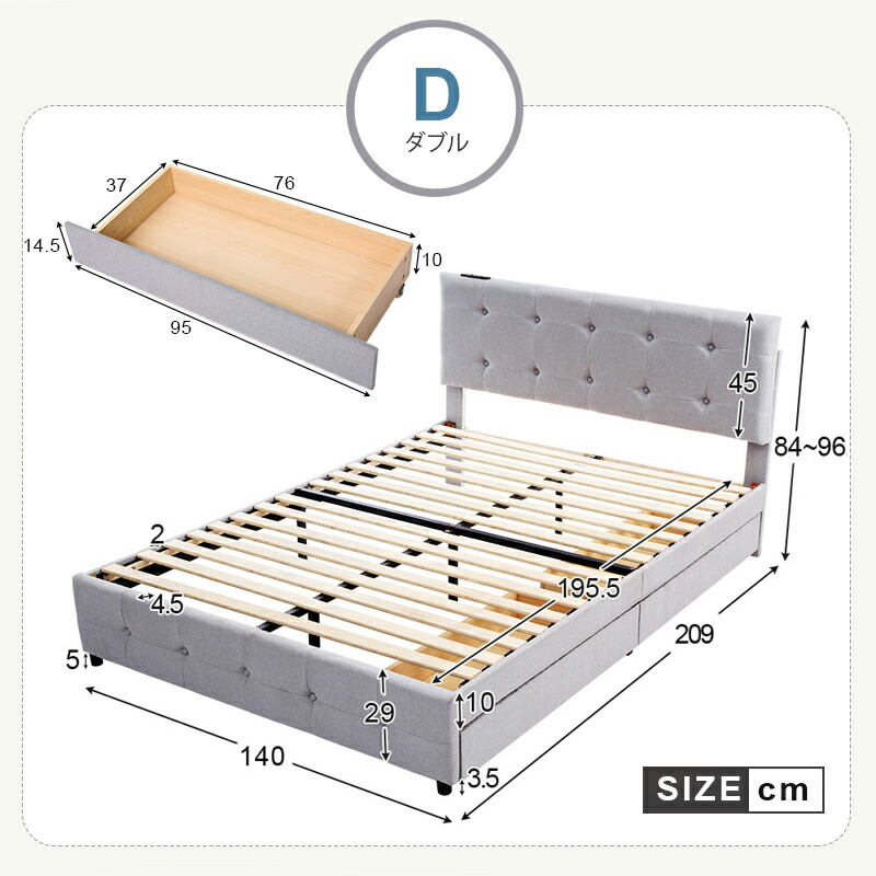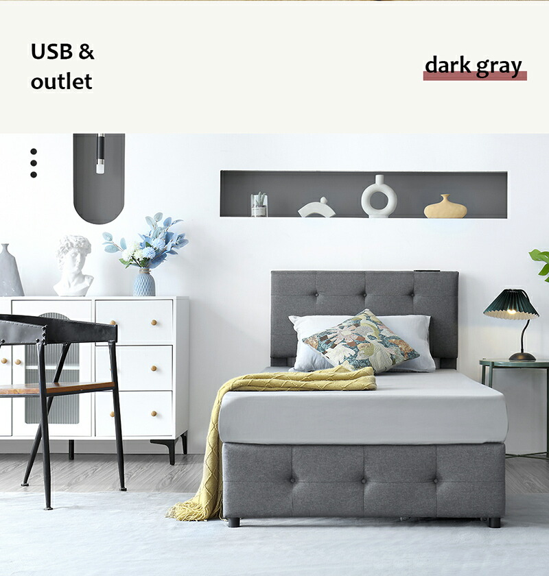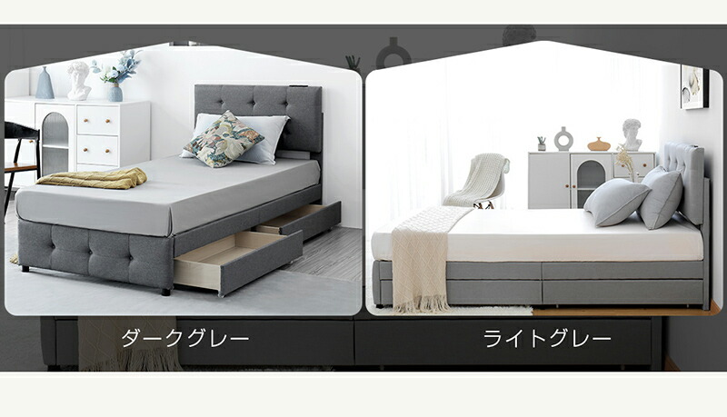 ファブリックベッド ベッドフレーム 大 シングル セミダブル ダブル ライトグレー ダークグレー