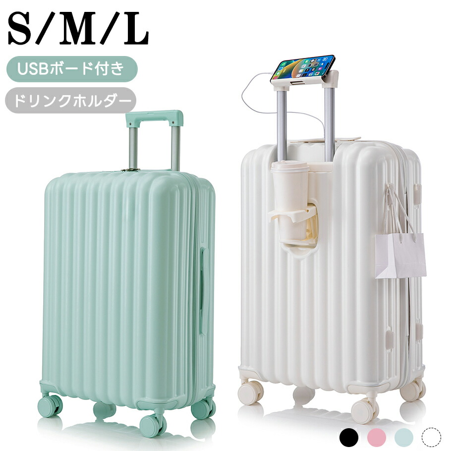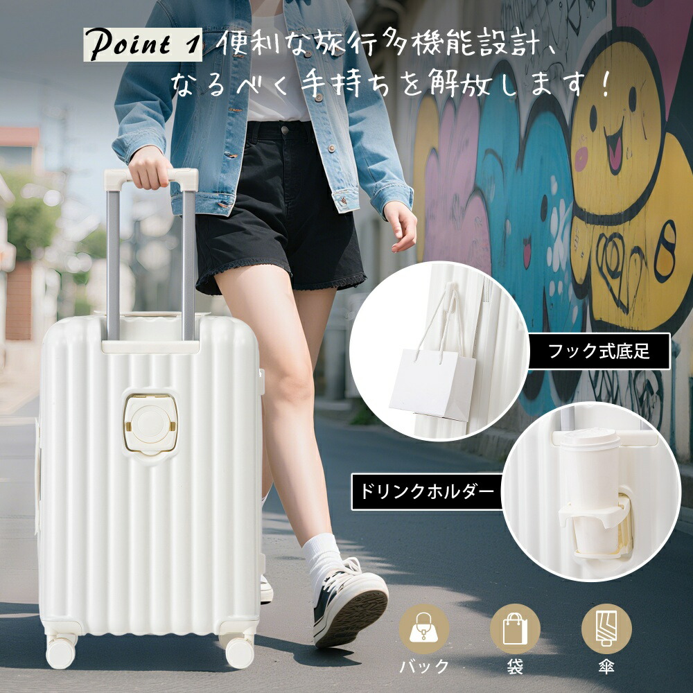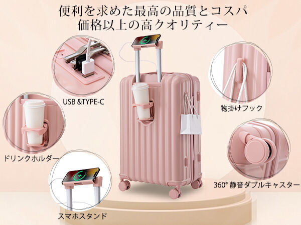 スーツケース キャリーケース TANOBI キャリーバッグ かわいい ドリンクホルダー付き USBポート付き 超軽量 小型 中型 大容量 大型 おしゃれ 4日7日用 360度 2日~14日用