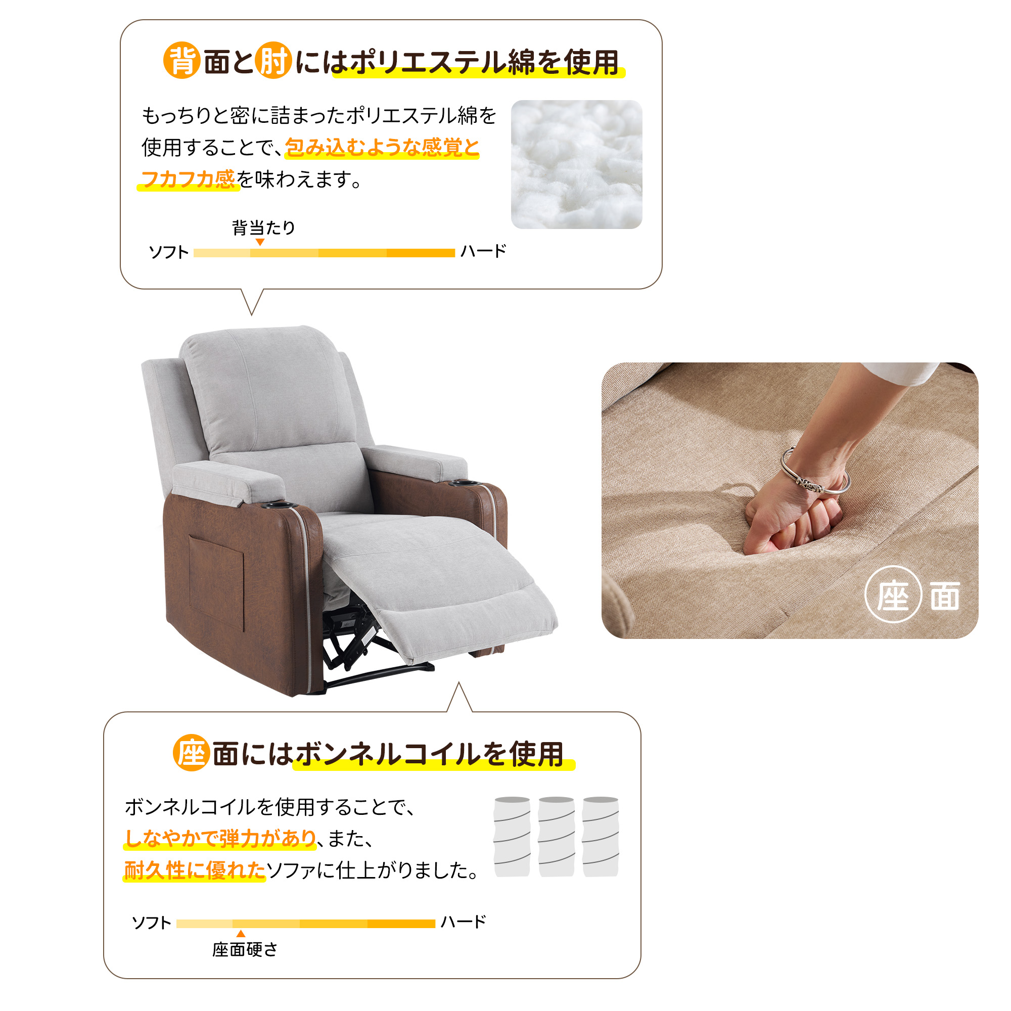 リクライニングソファ リモコン操作 リ ベージュ カーキ ブラウン ライトグレー ダークグレー