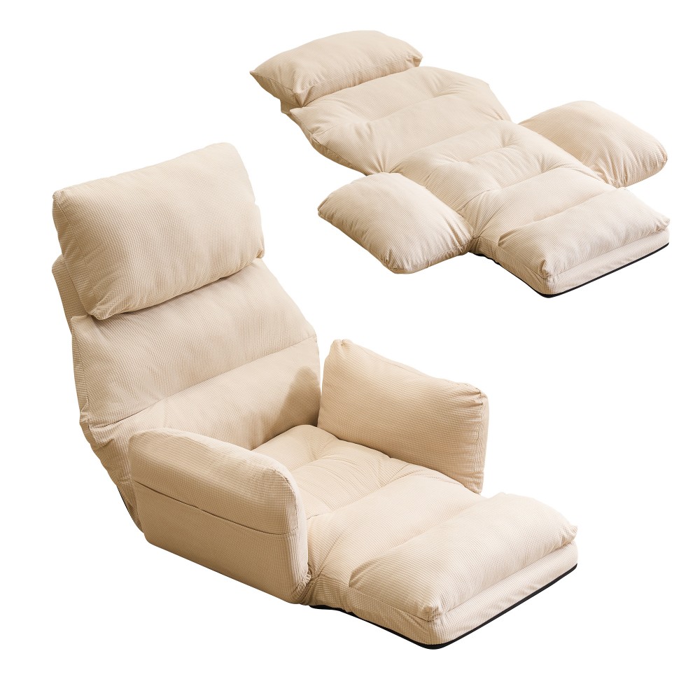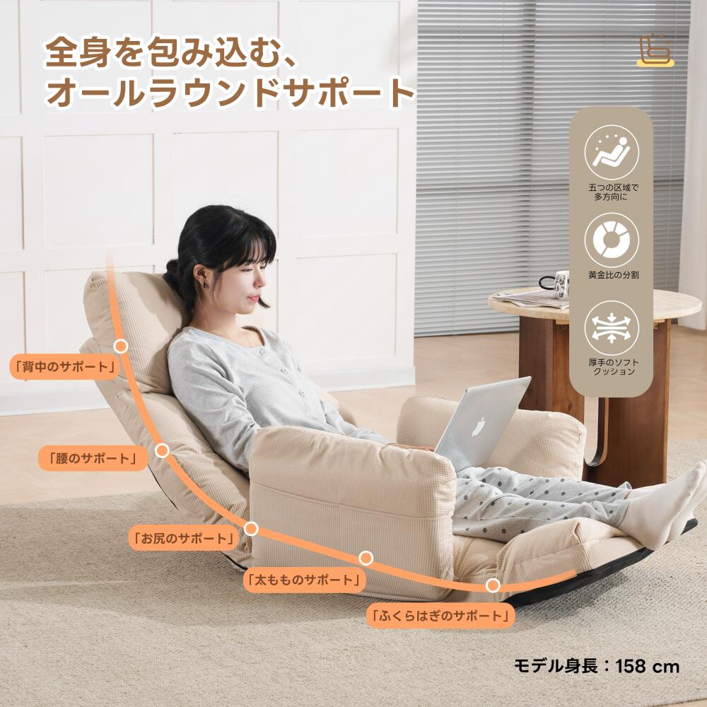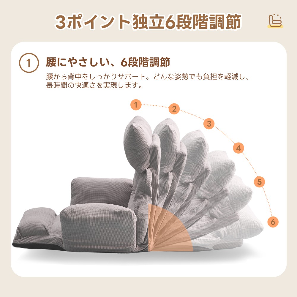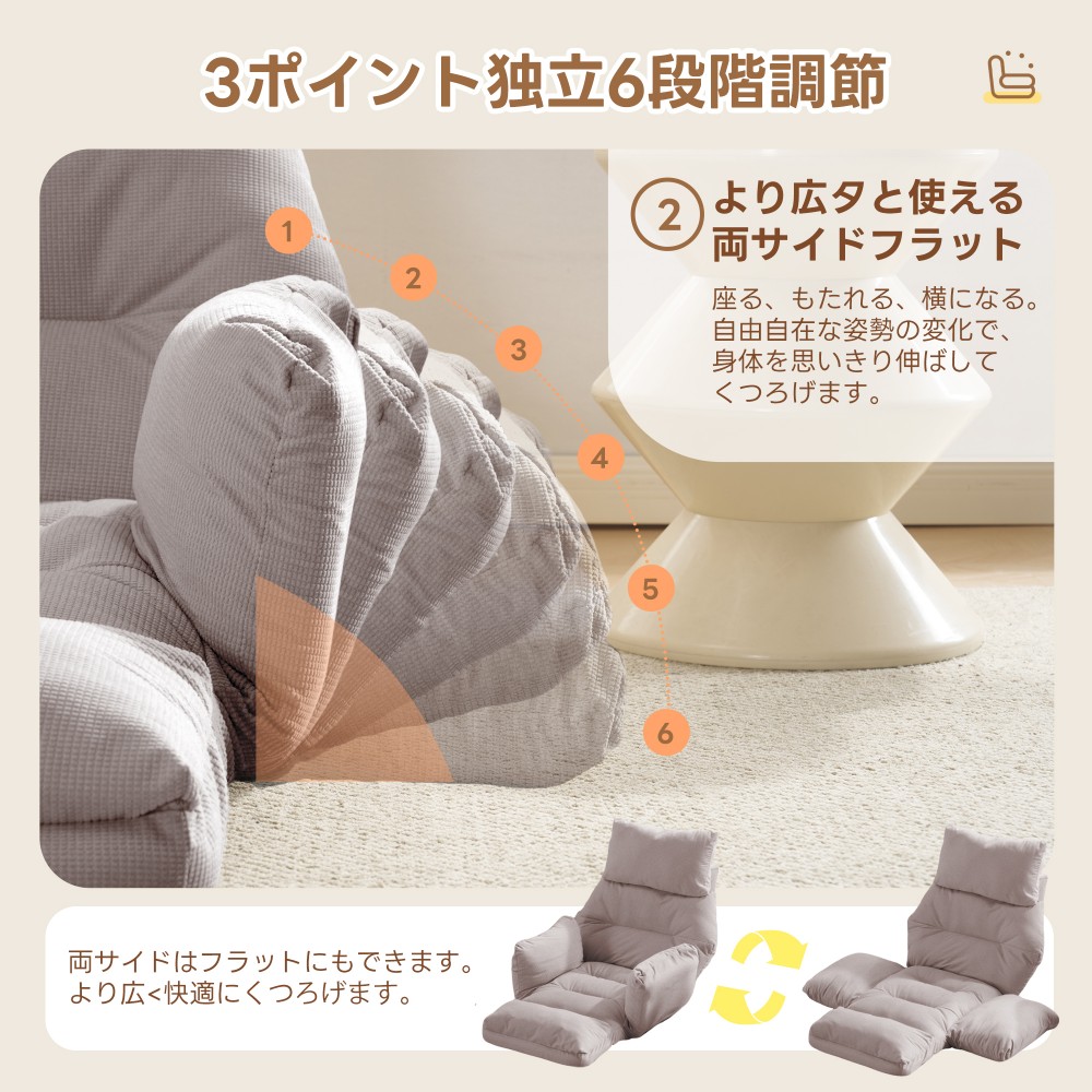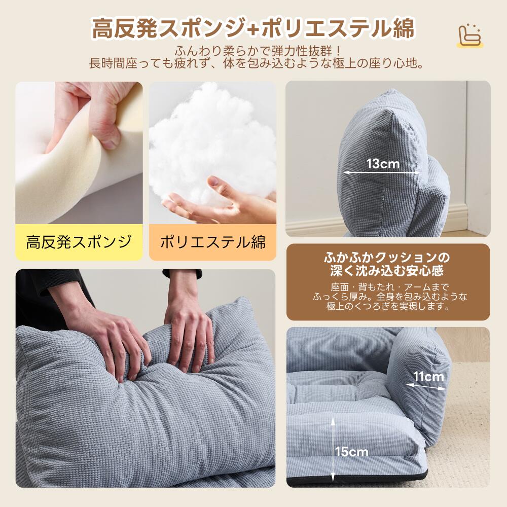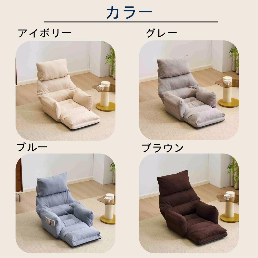座椅子 折りたたみ 6段調整可能 肘掛 アイボリー グレー ブルー ブラウン