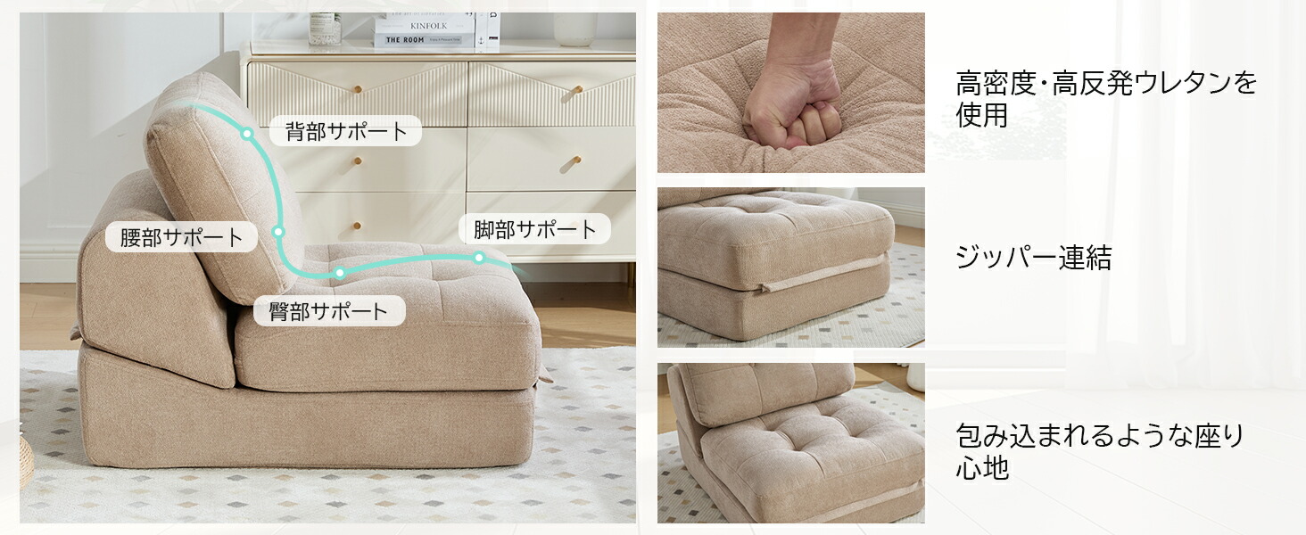 ソファベッド ソファ 3WAY 折りた ベージュ カーキ ブラウン ライトグレー ネイビー