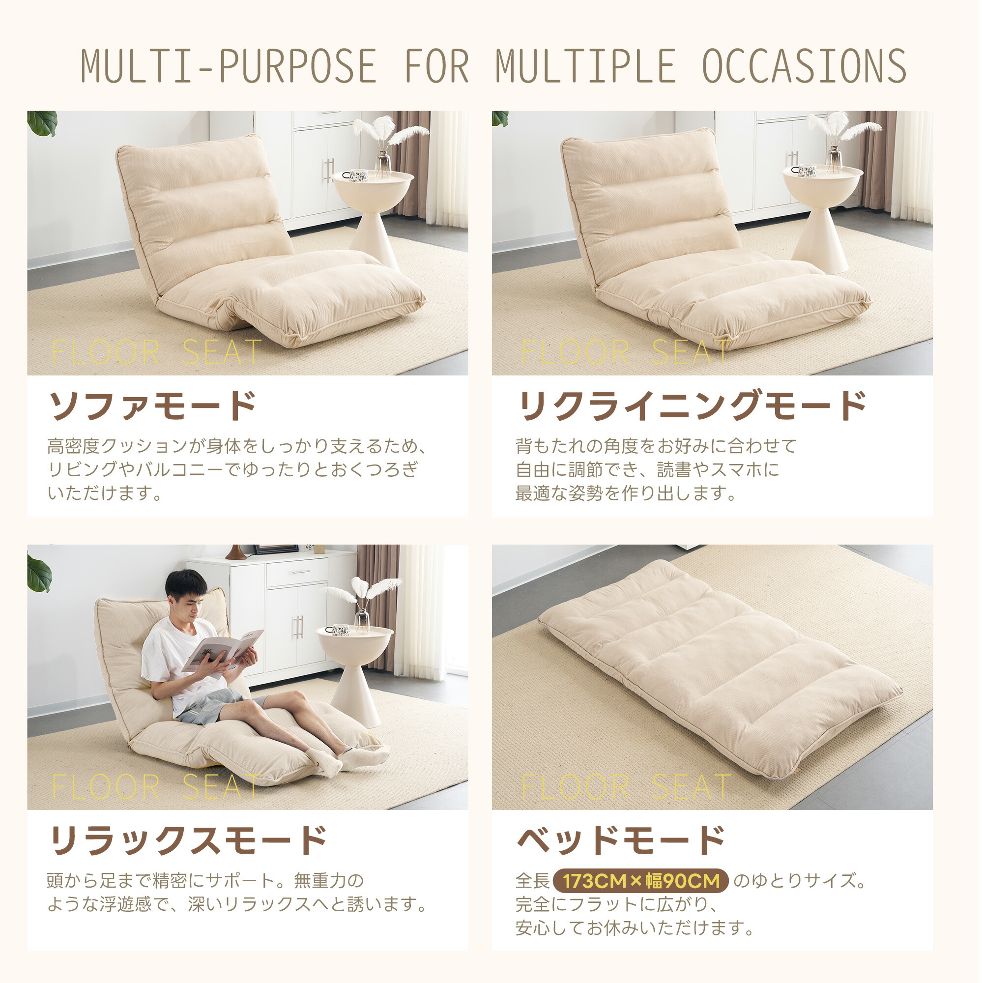 座椅子 1人掛け 折りたたみ ソファベ 幅75cm 幅90cm アイボリー グレー ブルー ブラウン