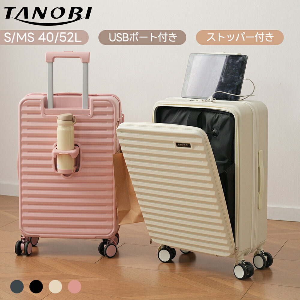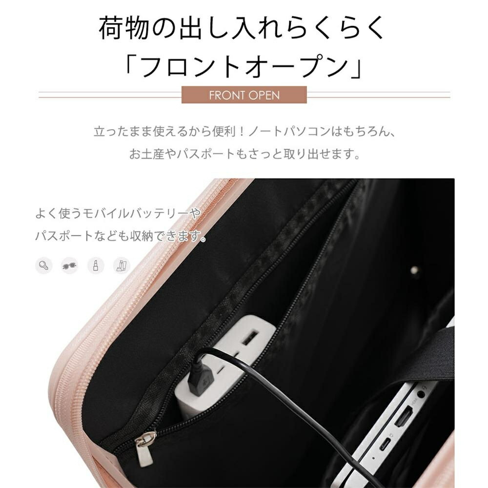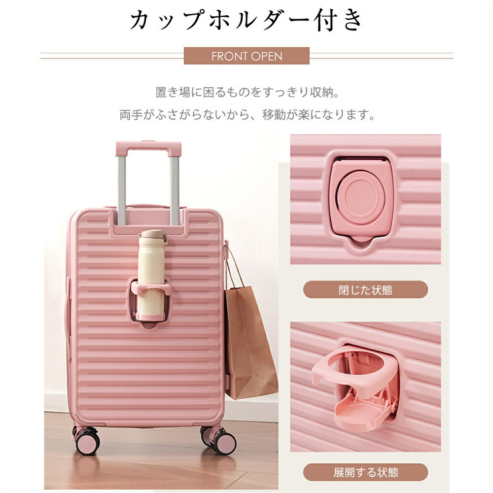 スーツケース Sサイズ MSサイズ フロントオープン 1日~3日用 4日~7日用 機内持ち込み キャリーバッグ USBポート付き ドリンクホルダー付き ストッパー付き ダブルキャスター 軽量 かわいい
