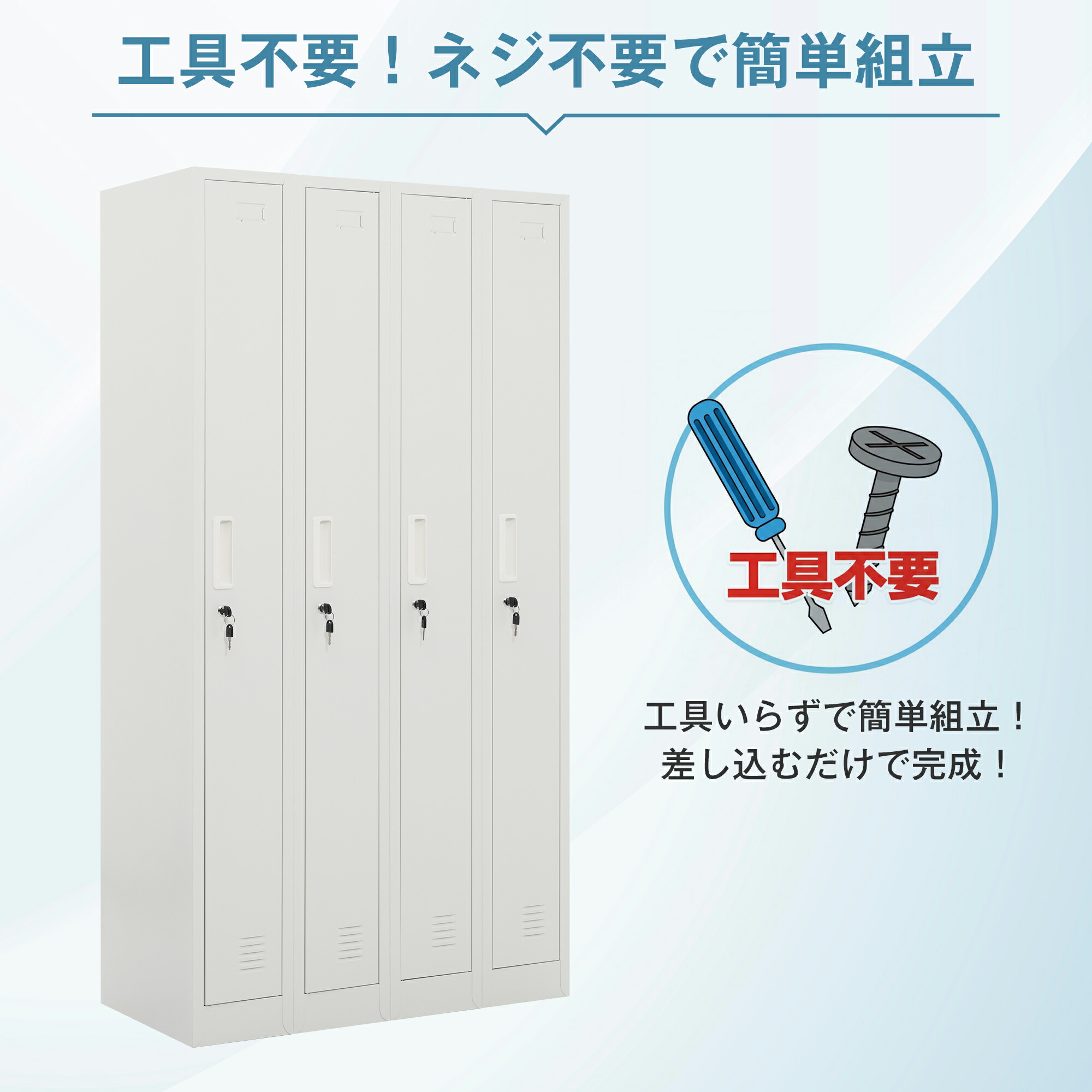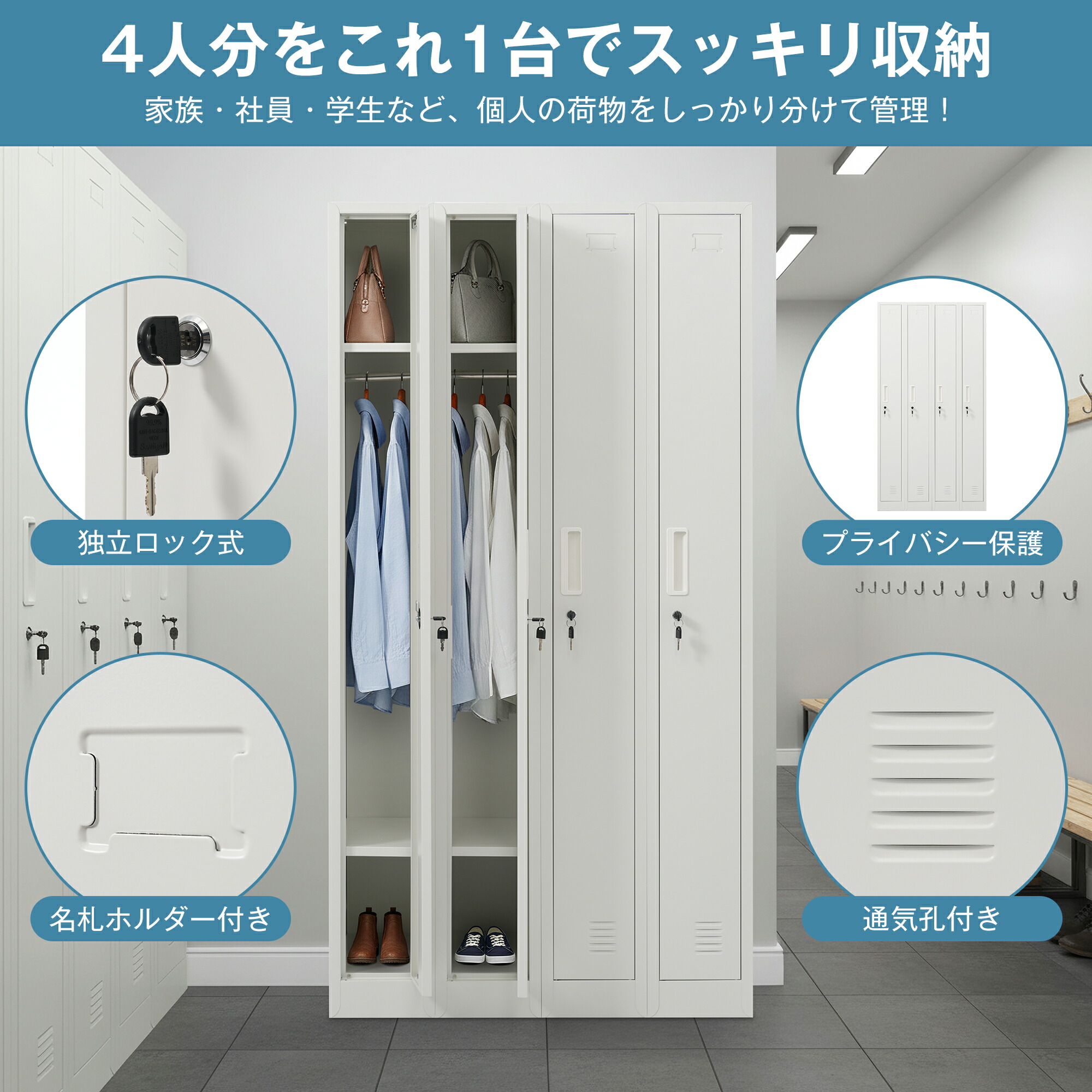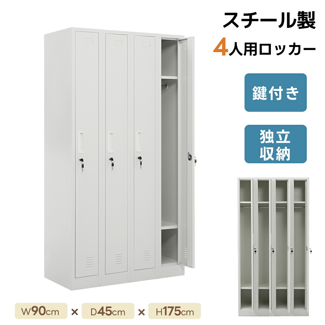 ロッカー 4人用 スリム 鍵付き スチールロッカー 更衣ロッカー 4枚扉 4列 オフィスロッカー スチール製 オフィス収納 業務用 収納 下駄箱 事務所 スチールキャビネット
