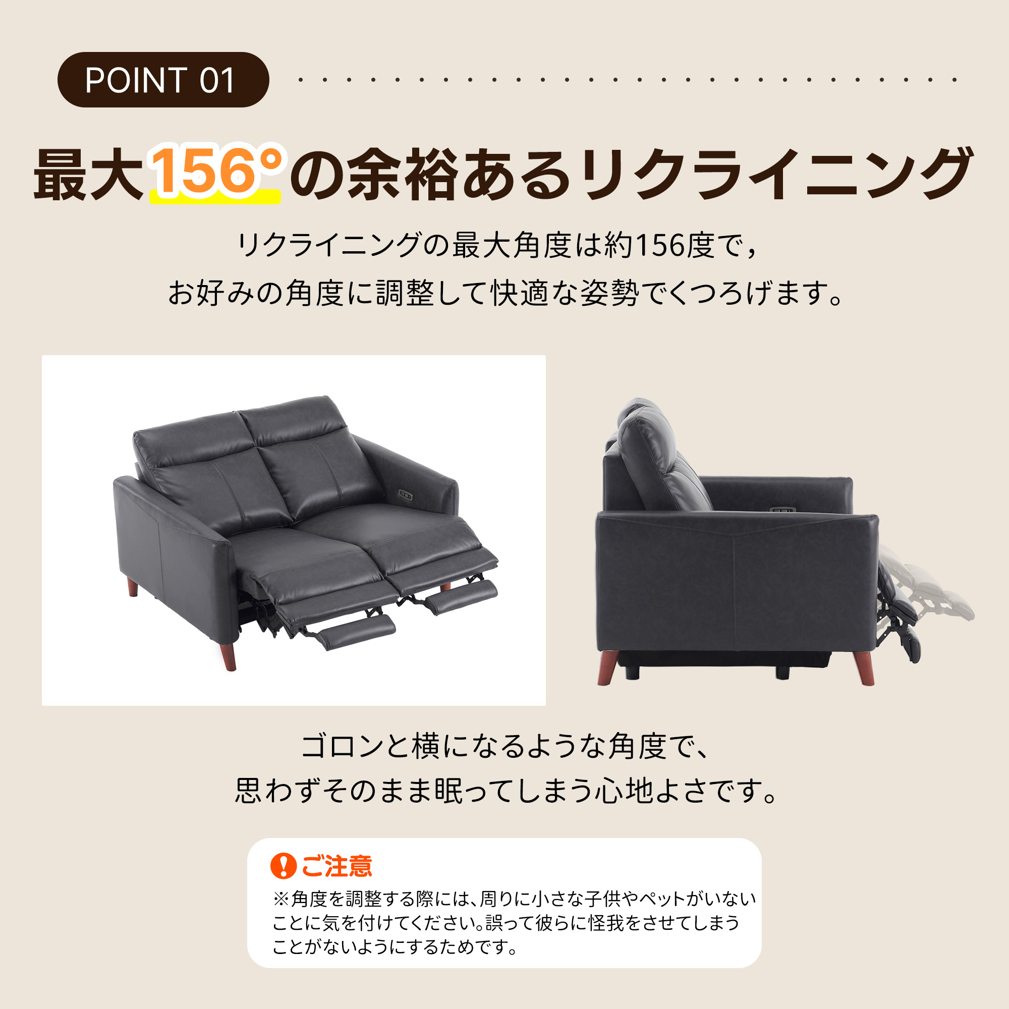 電動ソファ 2人掛け リクライニングチ ブロンズブラウン キャメル チャコールグレー