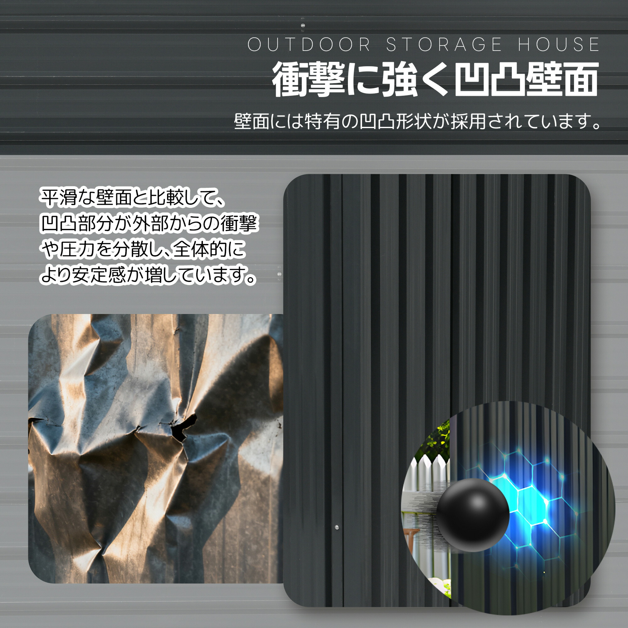 物置 物置き 屋外 戸外収納庫 収納ラ ブル-グレー ブラック