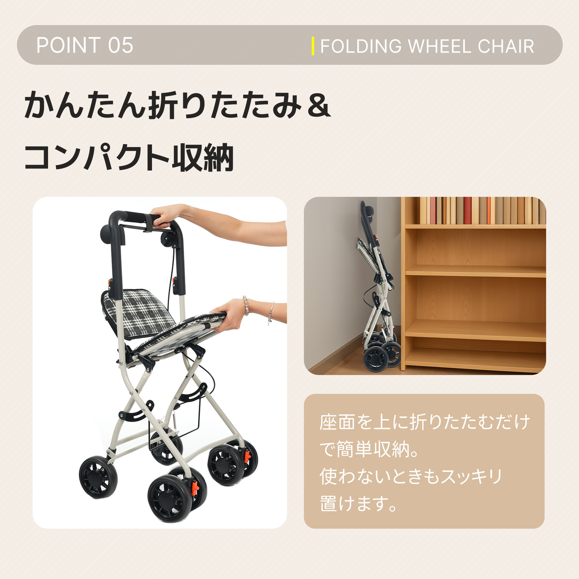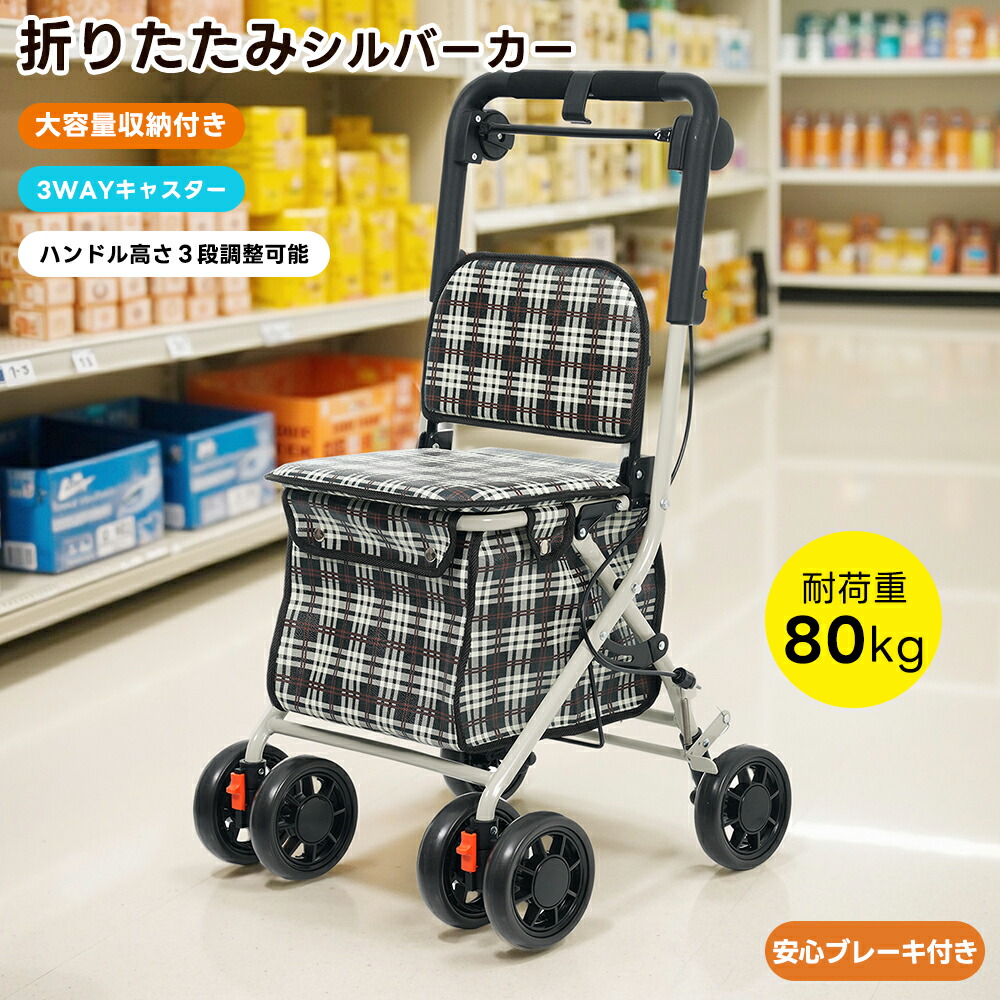 シルバーカー 歩行補助 軽量 折りたた ブラックチェック柄 ブラウンチェック柄