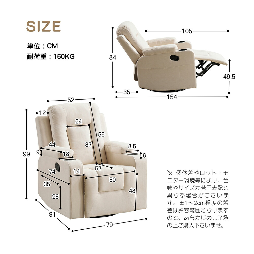 リクライニングソファ 1人掛け 165 ベージュ グレーブラウン ライトグレー