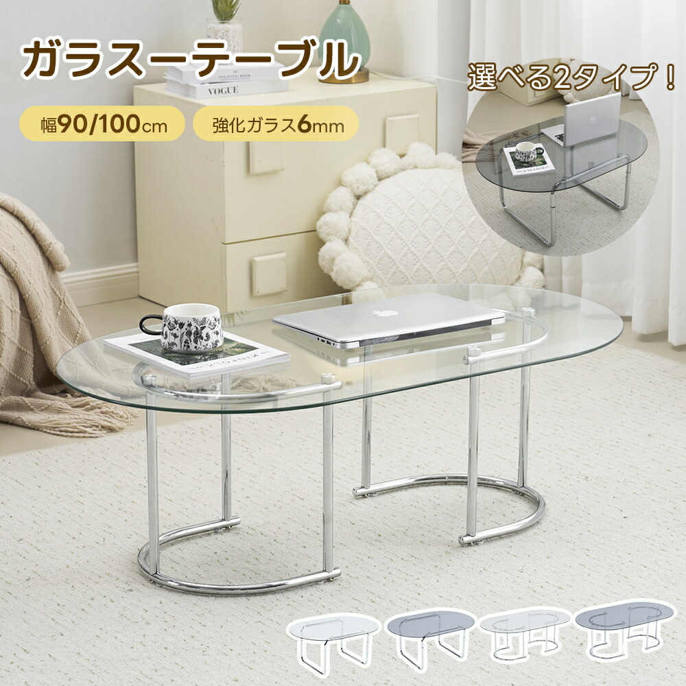 ガラステーブル テーブル ローテーブル タイプA-幅90cm タイプB-幅100cm クリア グレー