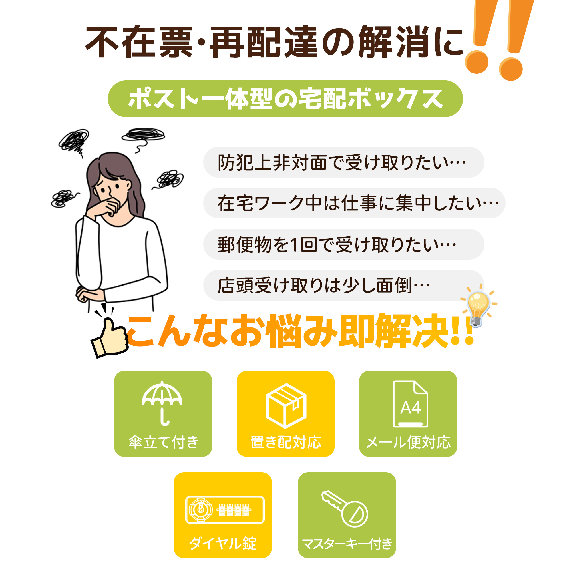 ポスト 置き型 ほぼ完成品 傘立て付き ベージュ+木目 ブラックー+木目