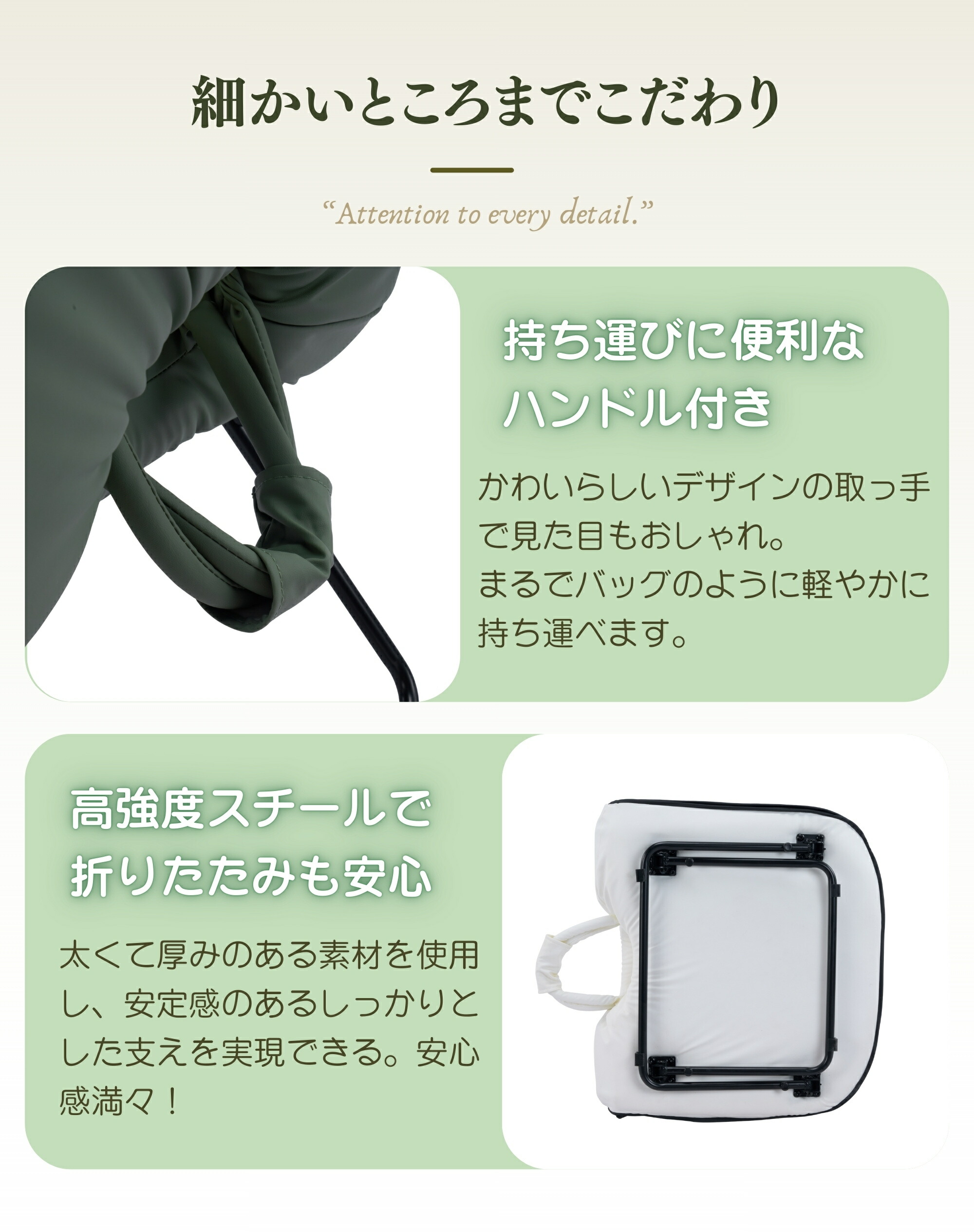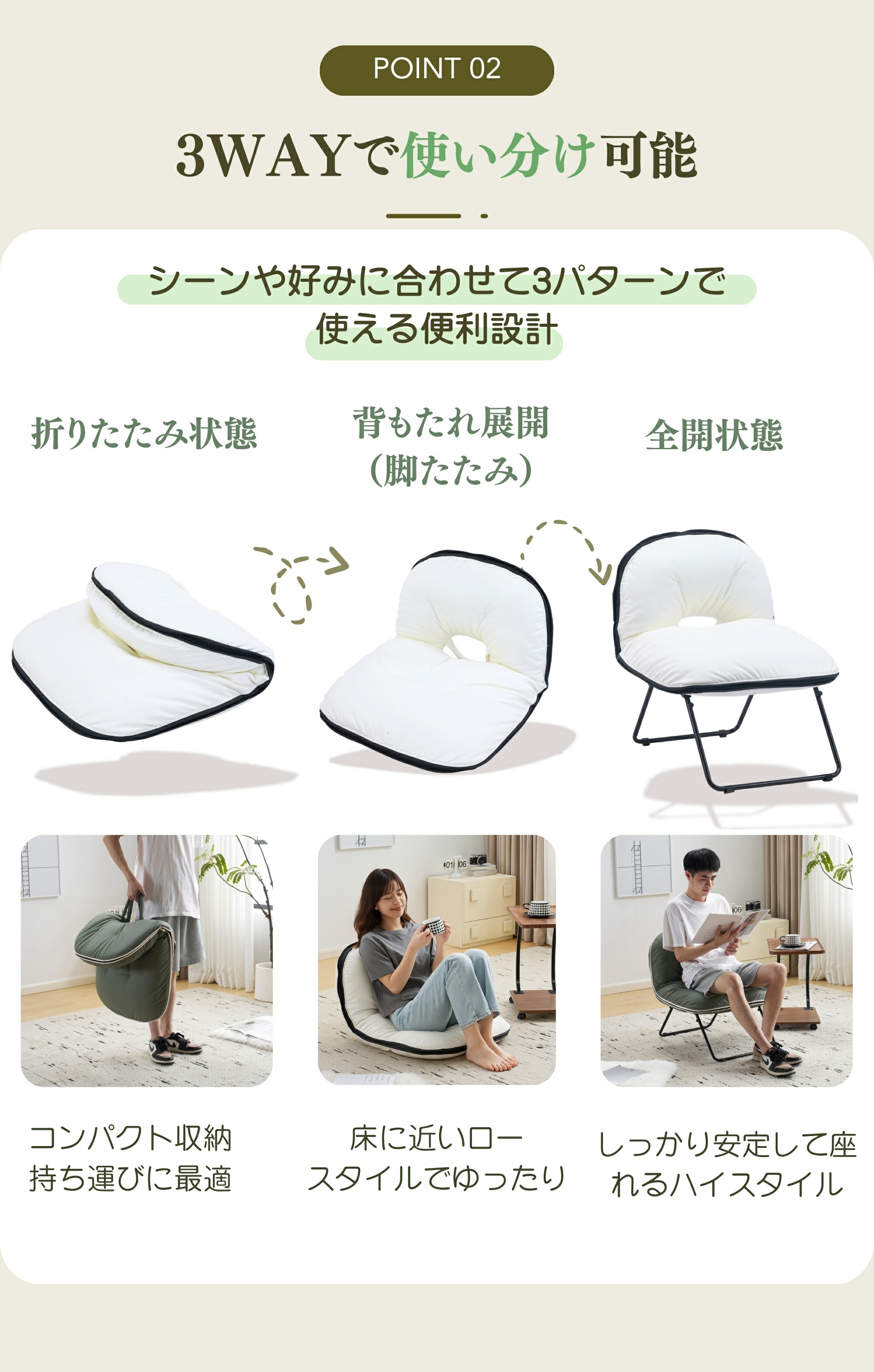 折りたたみチェア 軽量 座椅子 アウト ベージュ グリーン