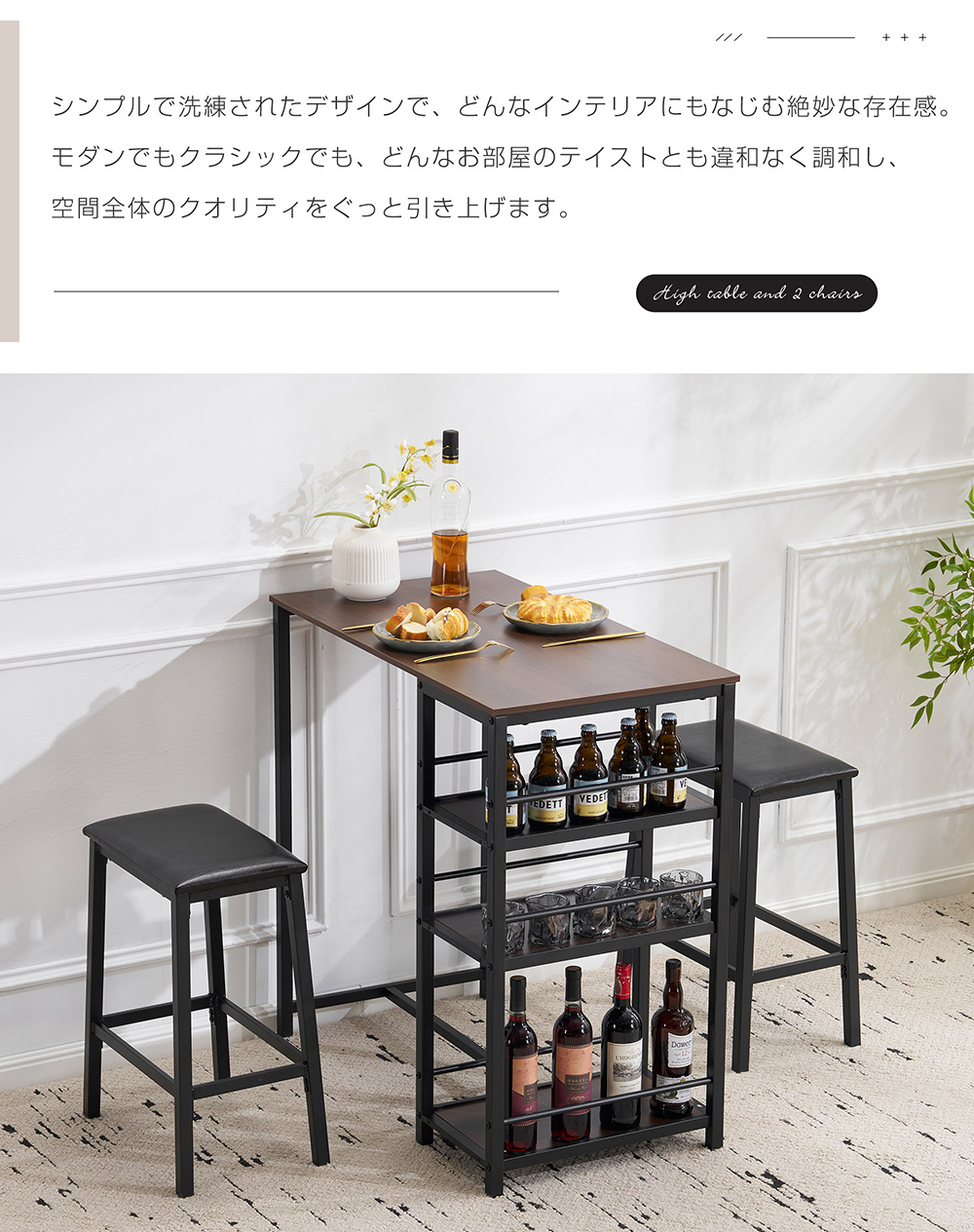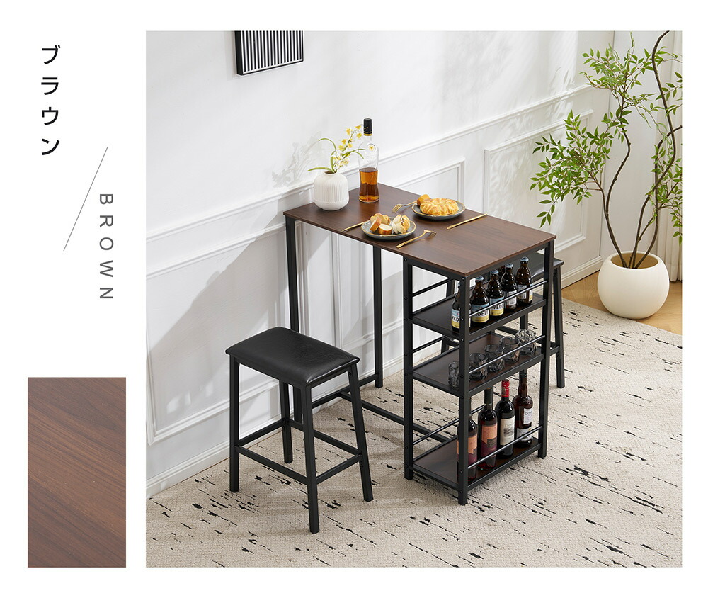 カウンター3点セット ダイニング3点セ ナチュラル ブラウン