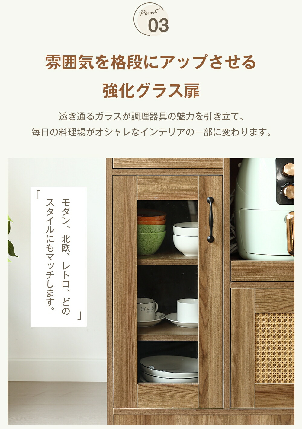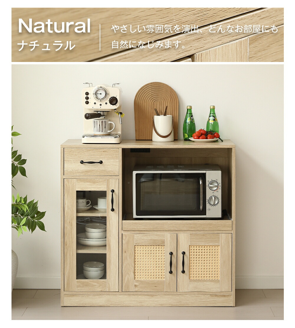 キャビネット ラタン調 扉付き サイド ブラウン ナチュラル