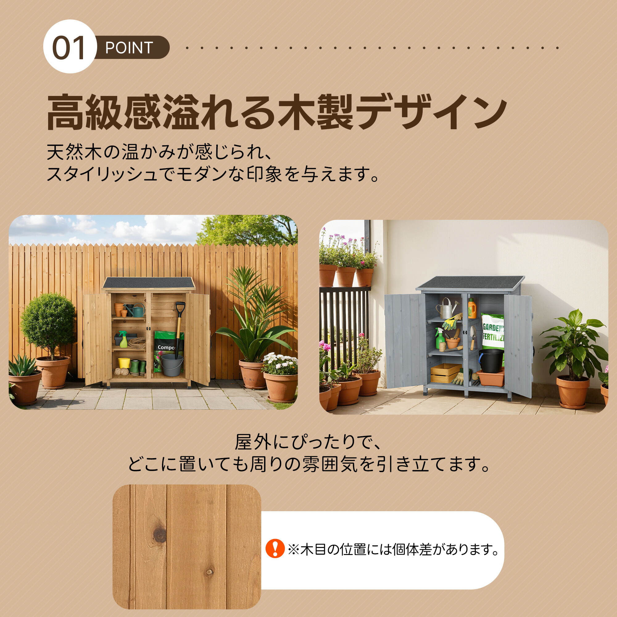 物置き 木製 収納庫 観音扉 木製物置 ナチュラル グレー