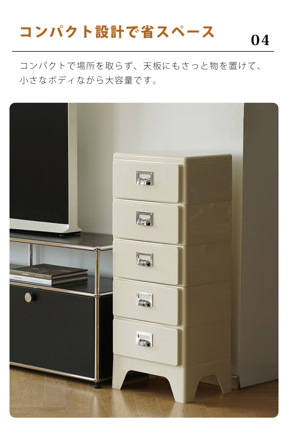 収納ケース 整理タンス 組立不要 2段 2段 4段 5段 アイボリーホワイト レトログリーン