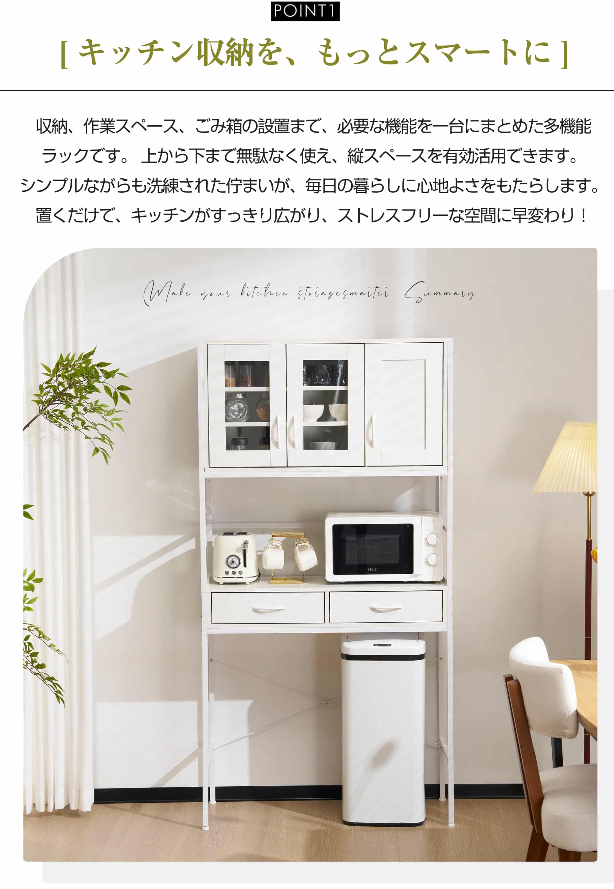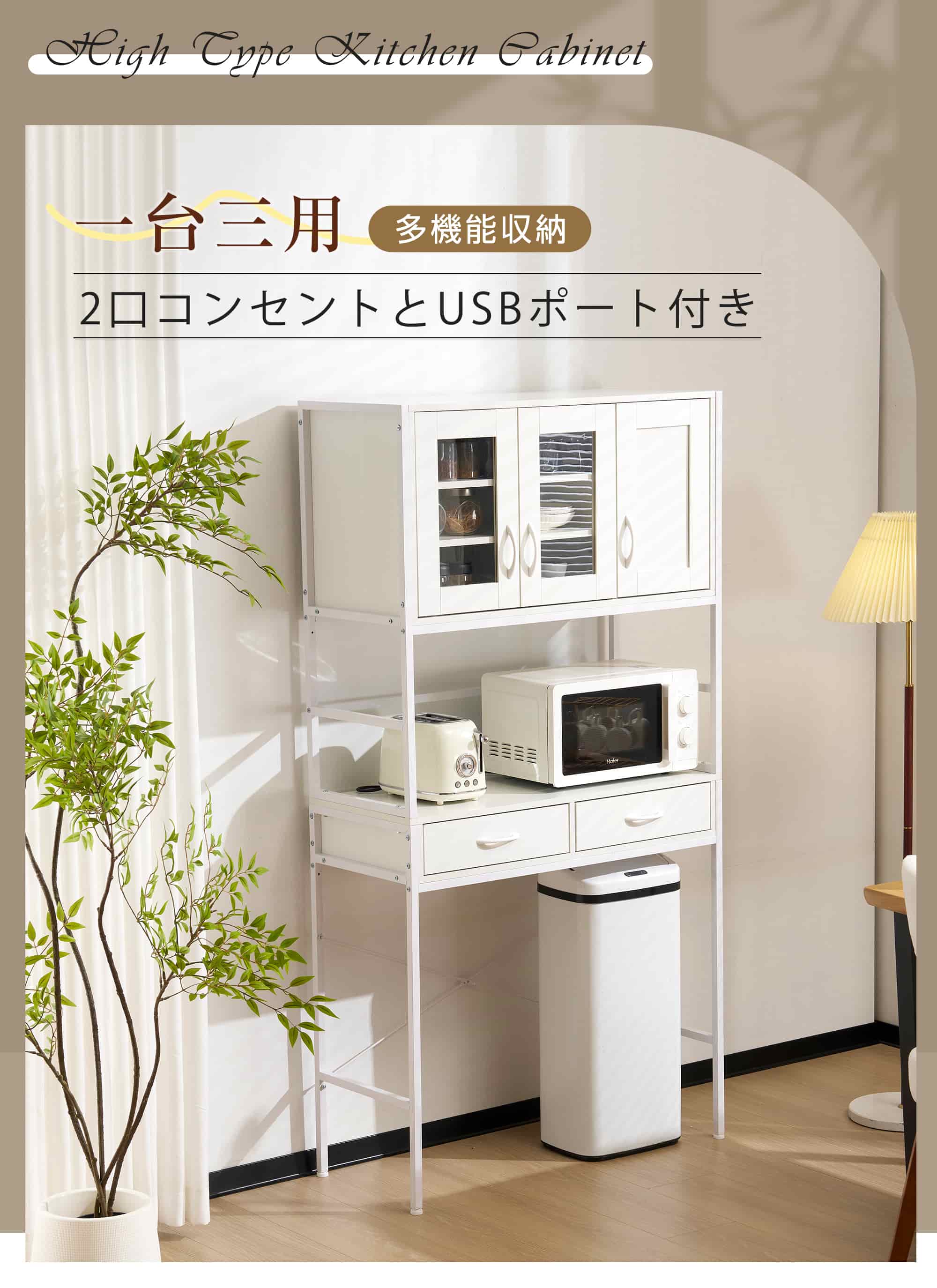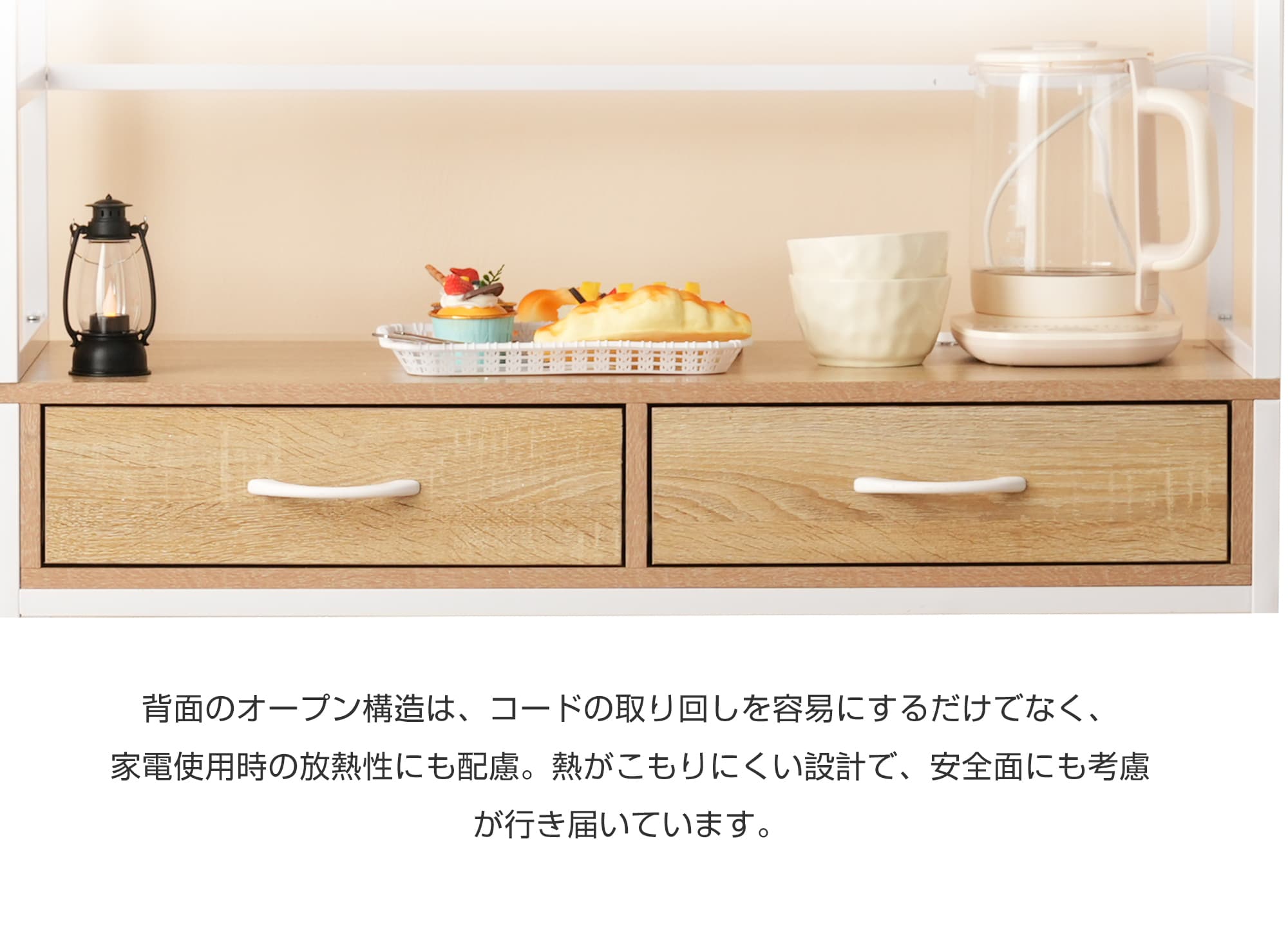 食器棚 キッチンボード レンジボード ホワイト ナチュラル