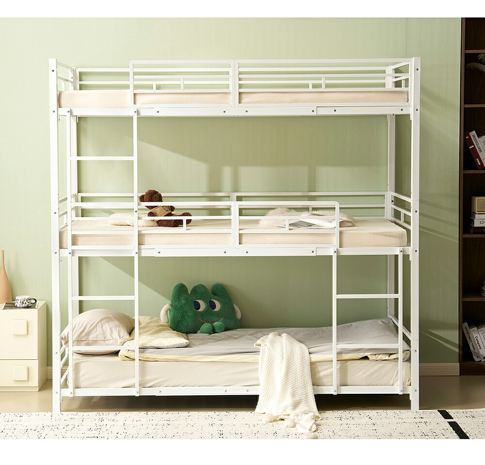 三段ベッド 子供 パイプ 大人用 シン ブラック ホワイト