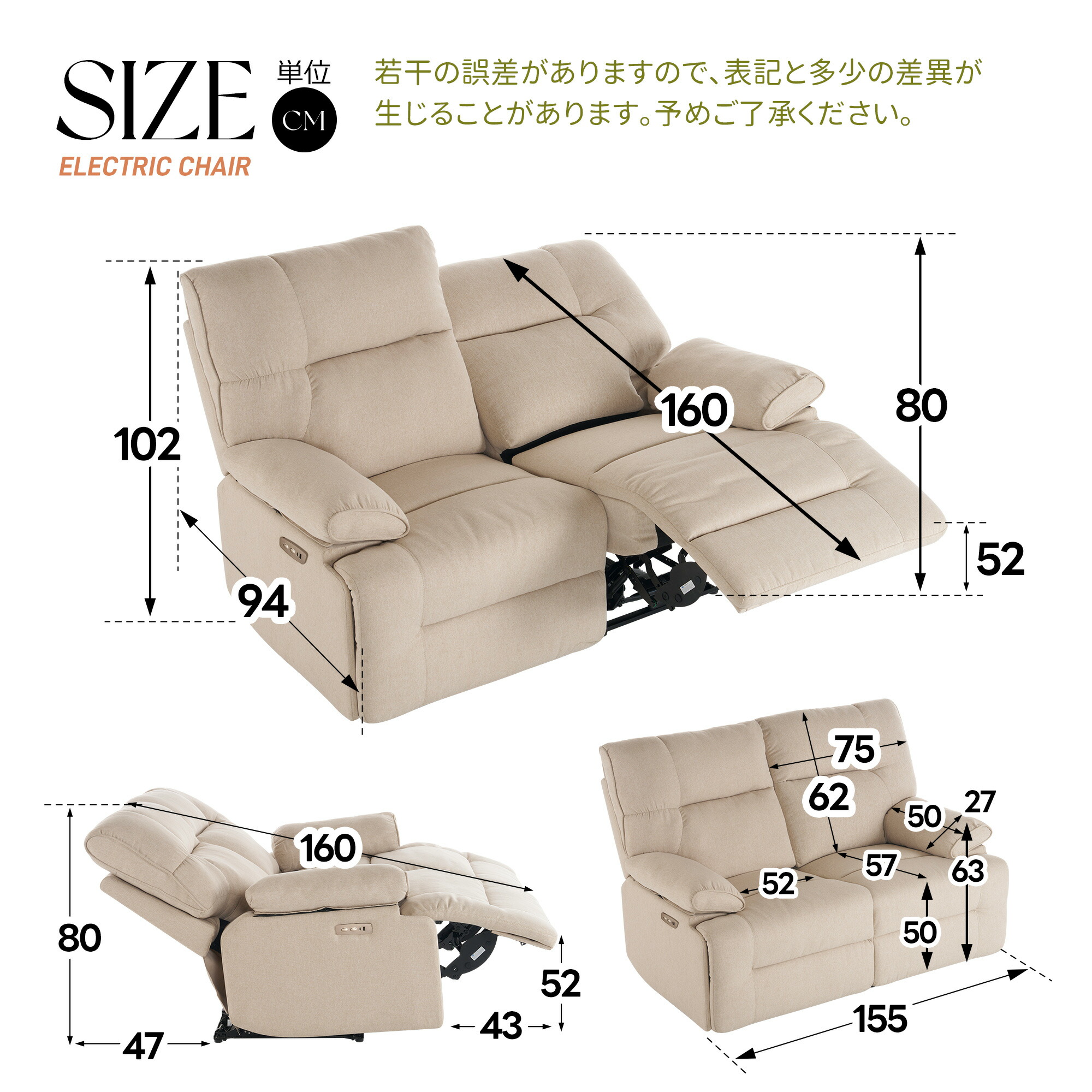 リクライニングソファ 電動リクライニン ベージュ グレー