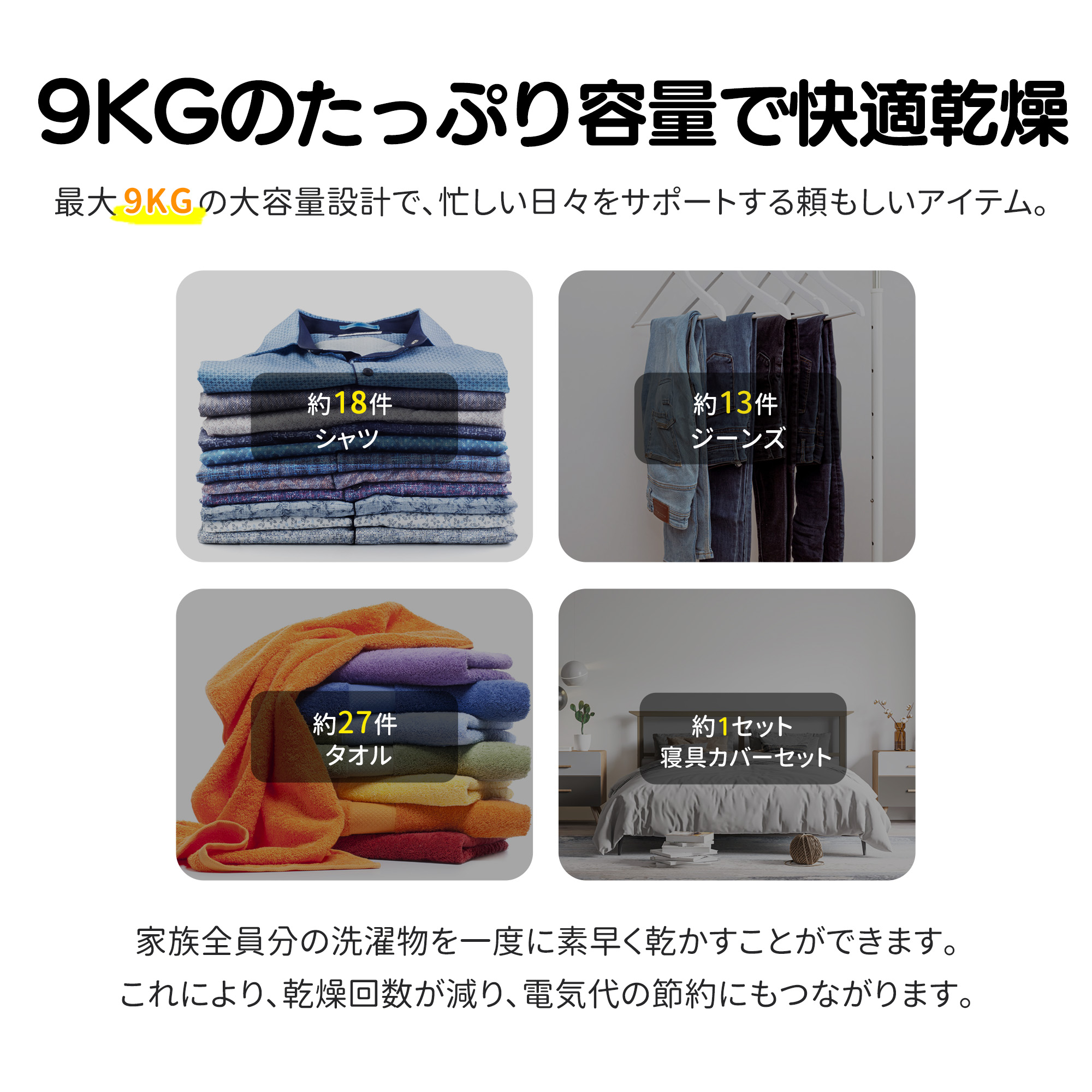 衣類乾燥機 9kg 家庭用 大容量 大