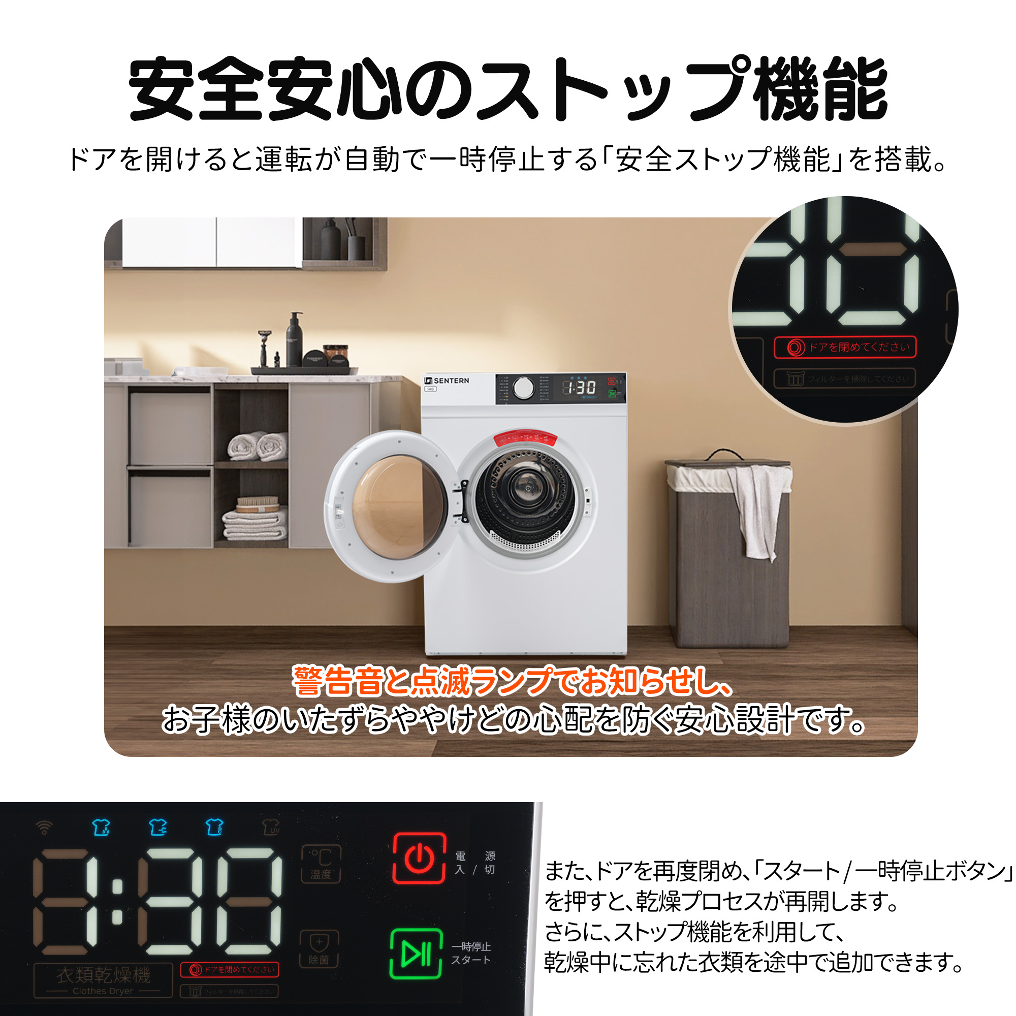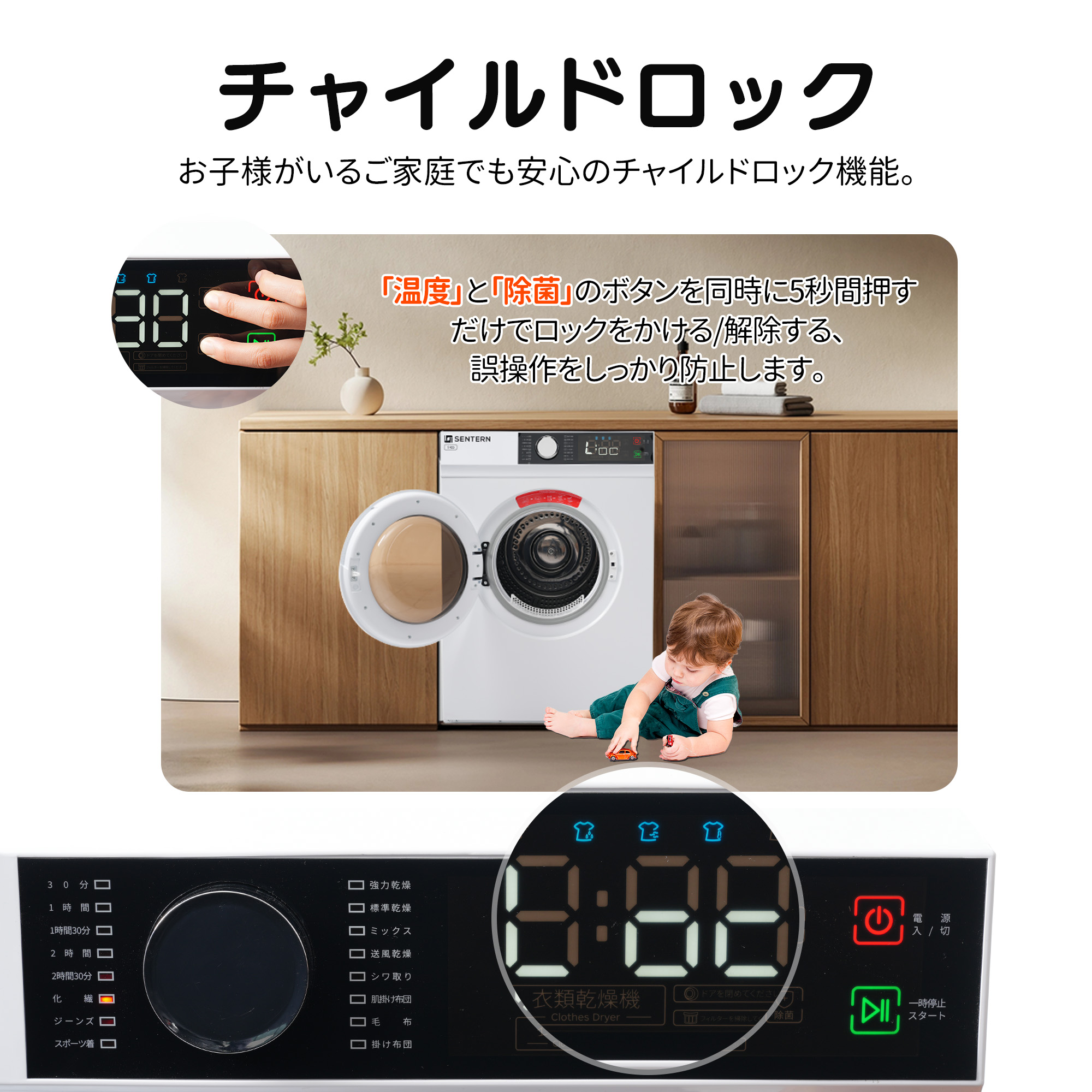 衣類乾燥機 9kg 家庭用 大容量 大型 乾燥機 自動乾燥 温度調節 除湿 高温除菌 シワ取り 布団乾燥 アイロン 静音 チャイルドロック ドラム式 湿気対策 カビ対策 花粉対策 PSE認証 梅雨対策