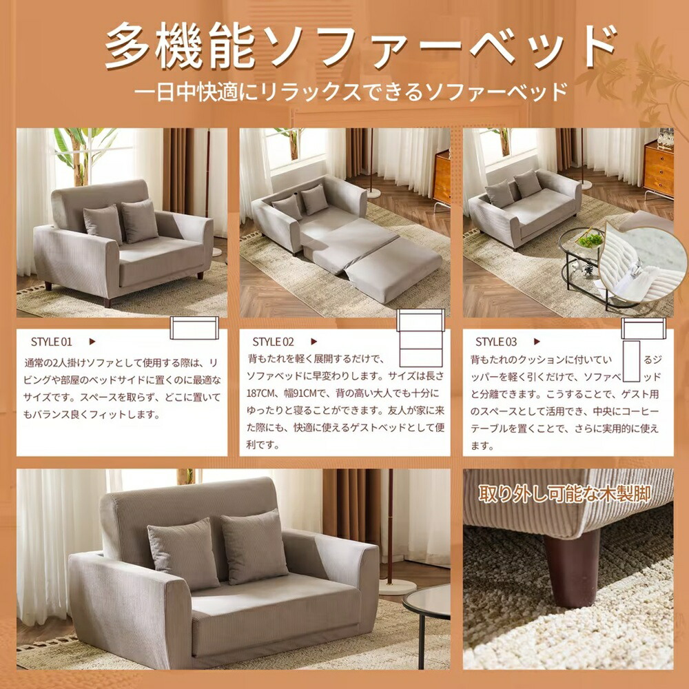 ソファーベッド 2人掛け 3ways ベージュ グレー グレーブラウン