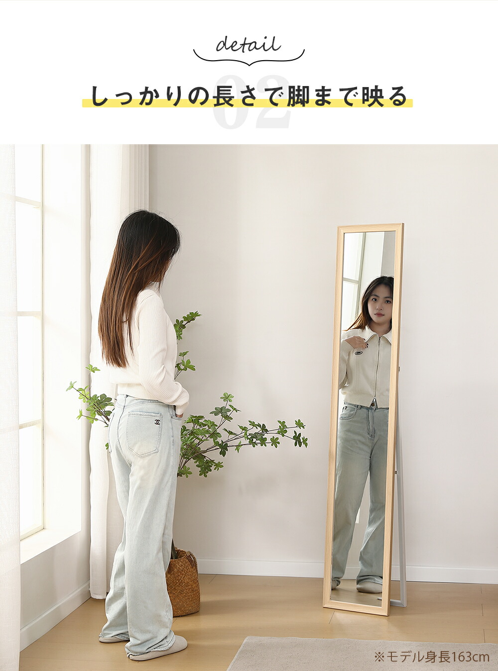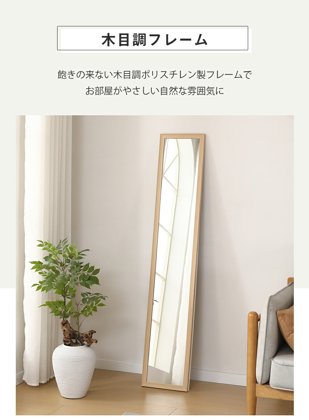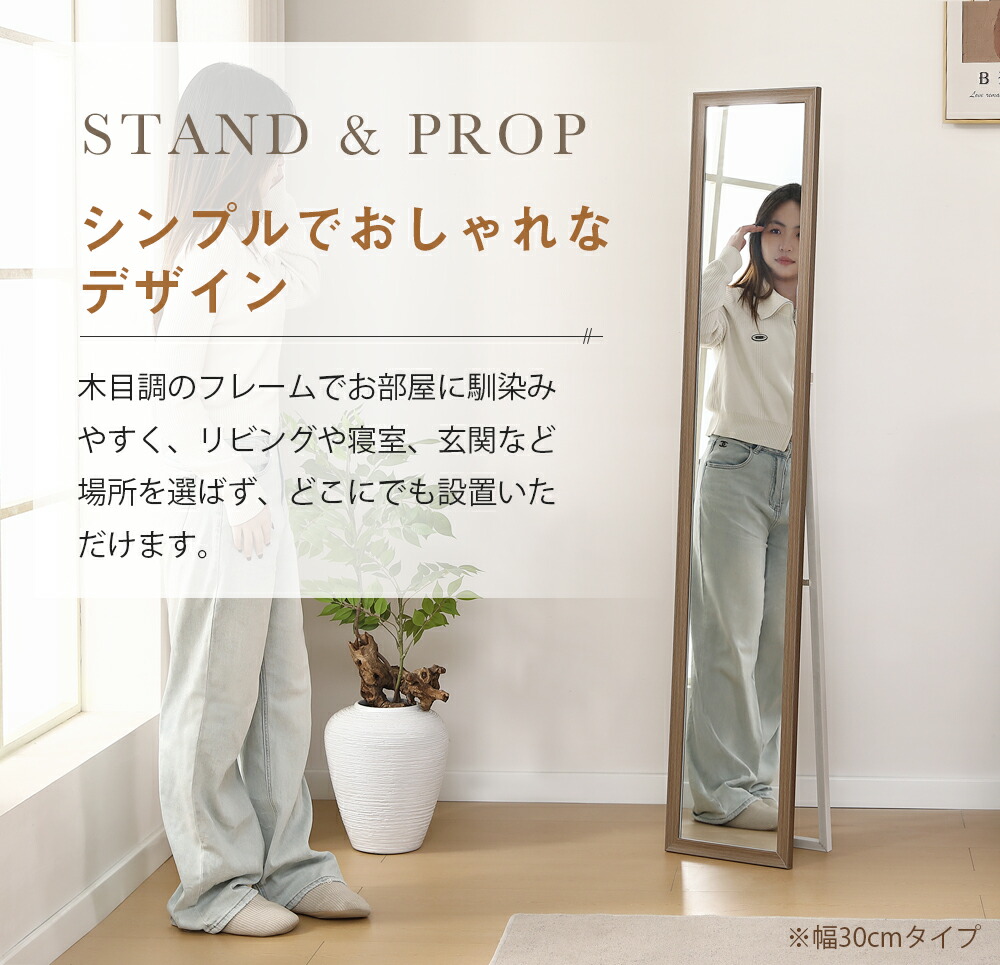 全身鏡 ミラー 玄関 全身 姿見 30 ブラウン ナチュラル 30×160cm 50×150cm