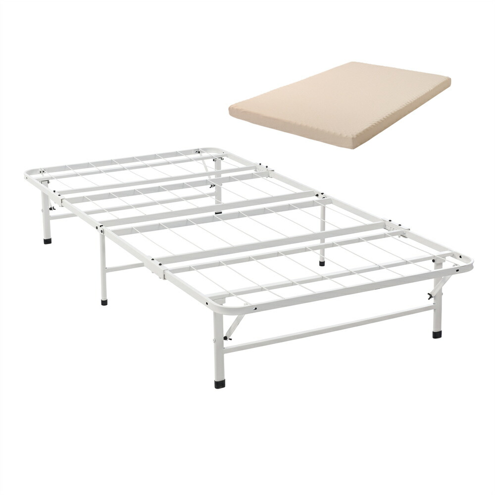 パイプベッド マットレス付き 折りたた ブラック+グレーマットレス ホワイト+ベージュマットレス
