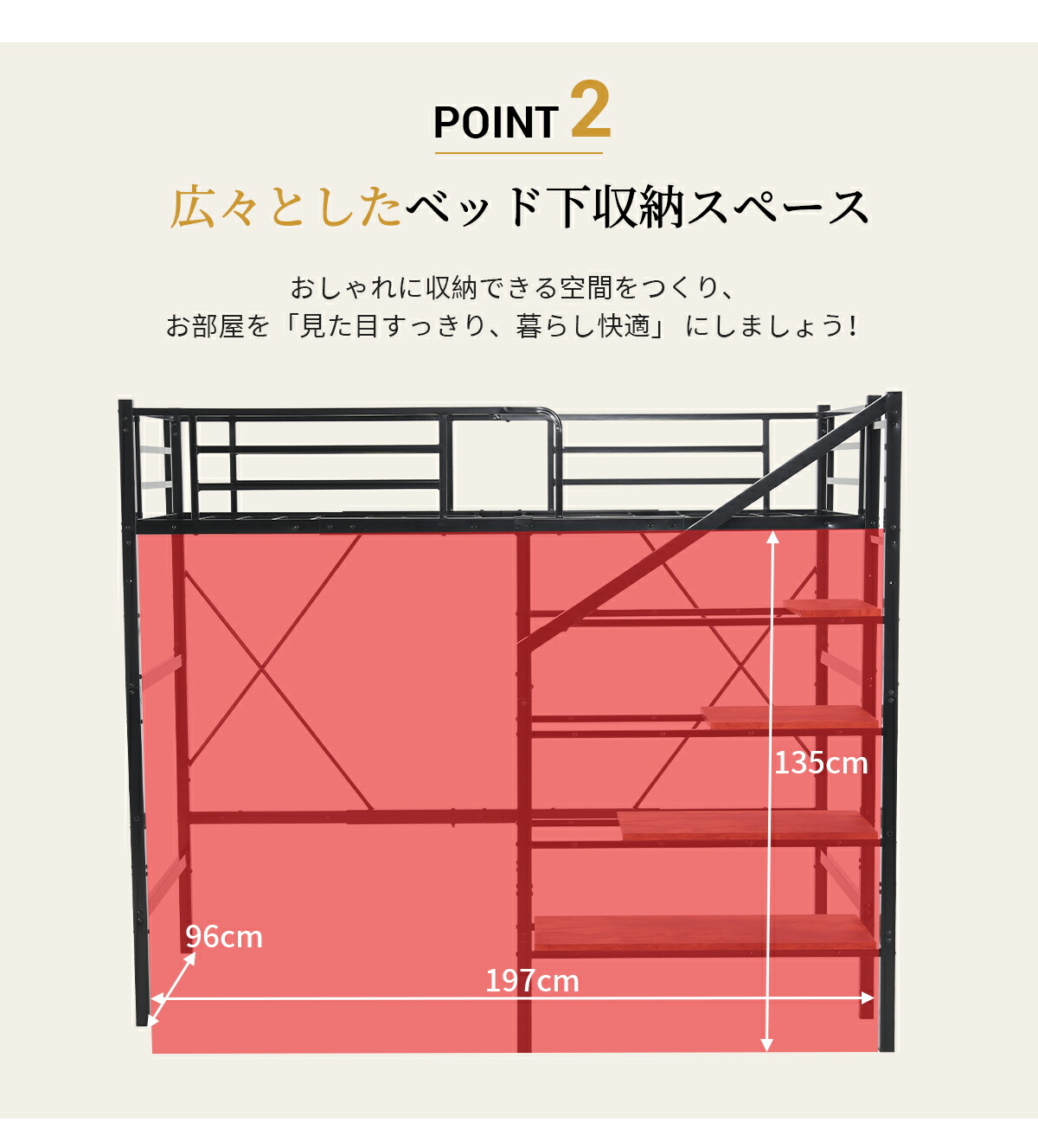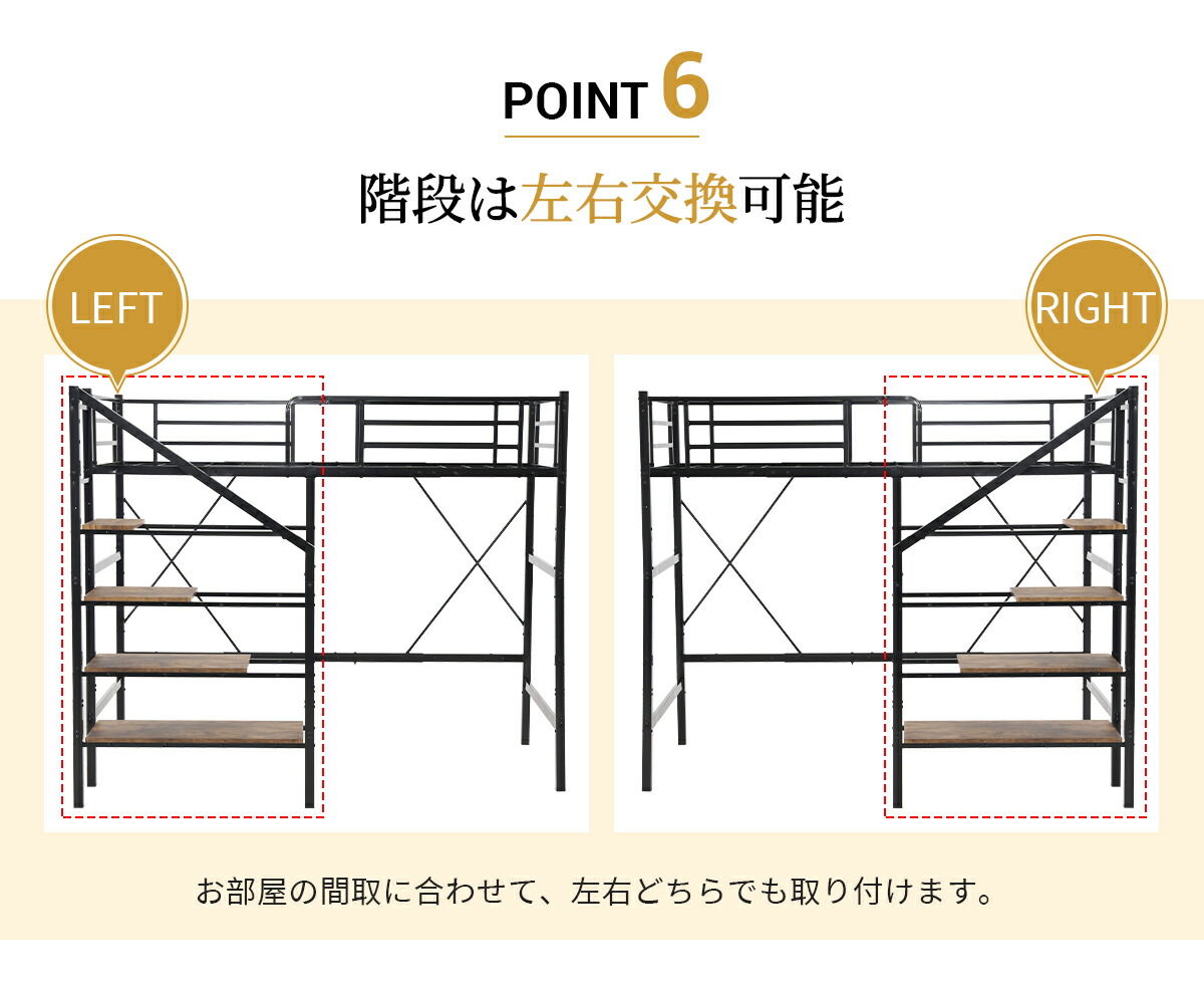 ロフトベッド 階段付き システムベッド ブラック ホワイト