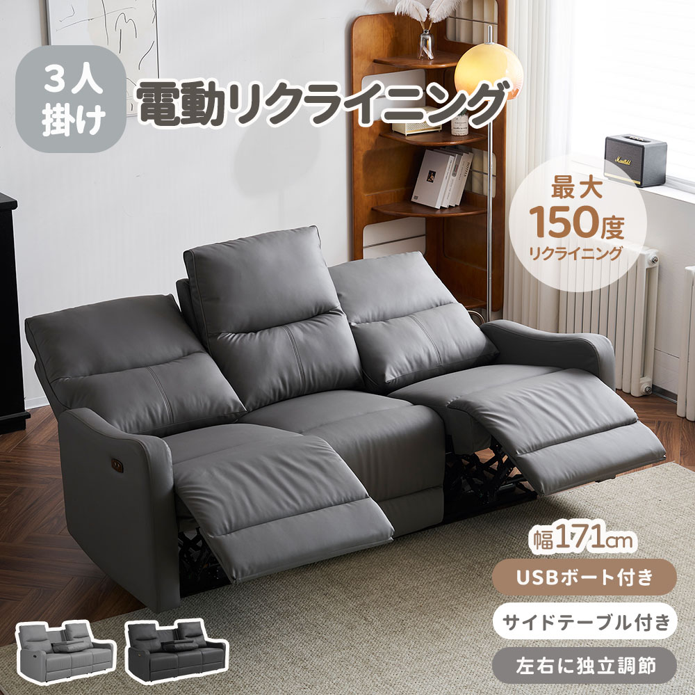 リクライニングソファー 3人掛け ソフ グレー ブラック 【NEW】ブラウン