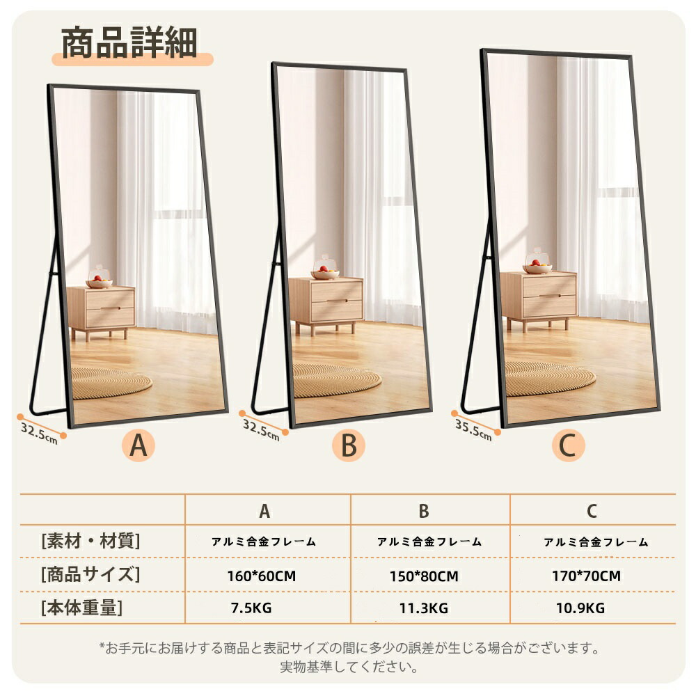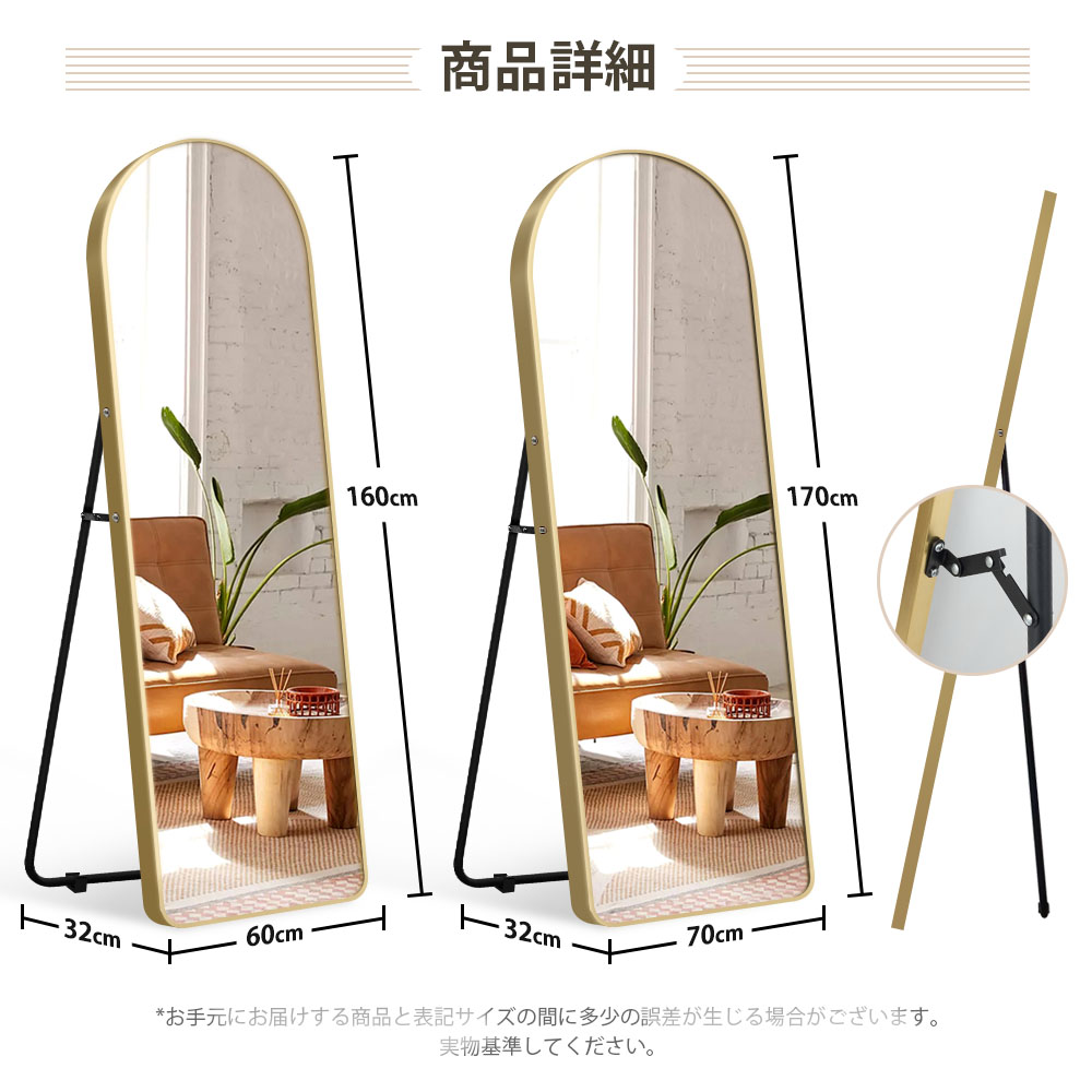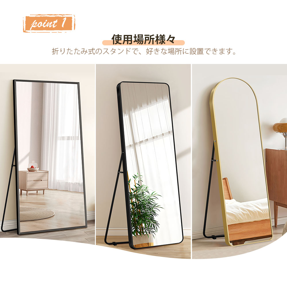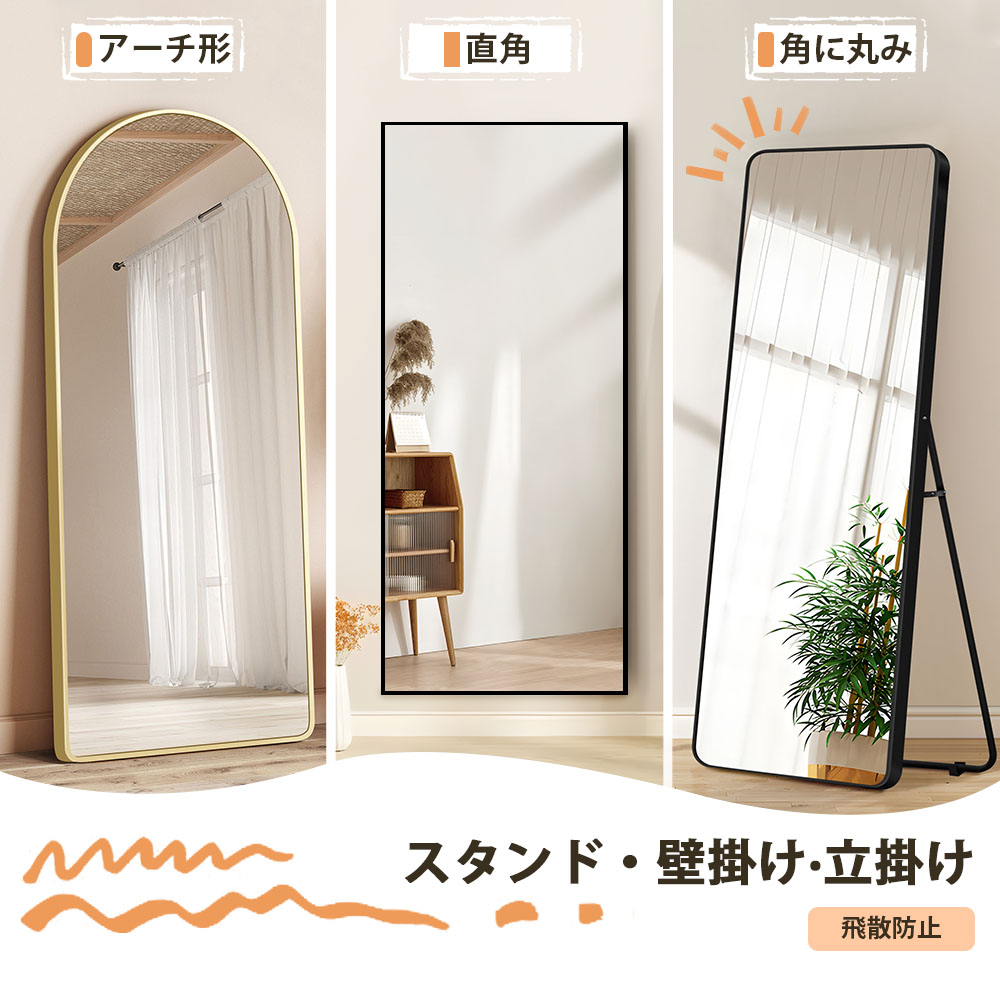 スタンドミラー 全身鏡 おしゃれ 鏡 80×150cm 60×160cm 70×170cm