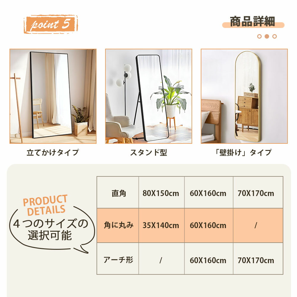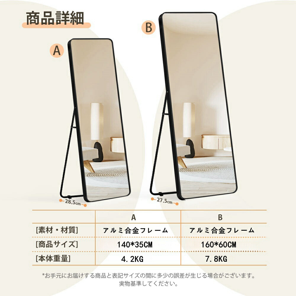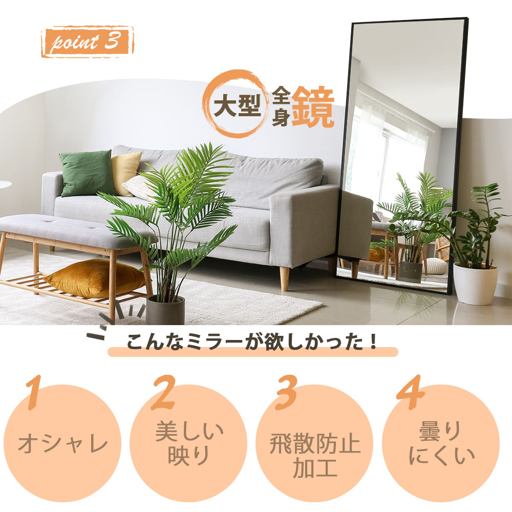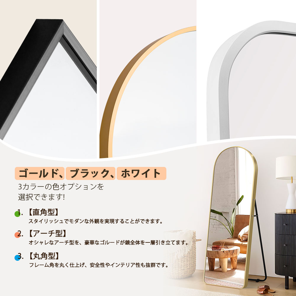 スタンドミラー 全身鏡 おしゃれ 鏡 80×150cm 60×160cm 70×170cm