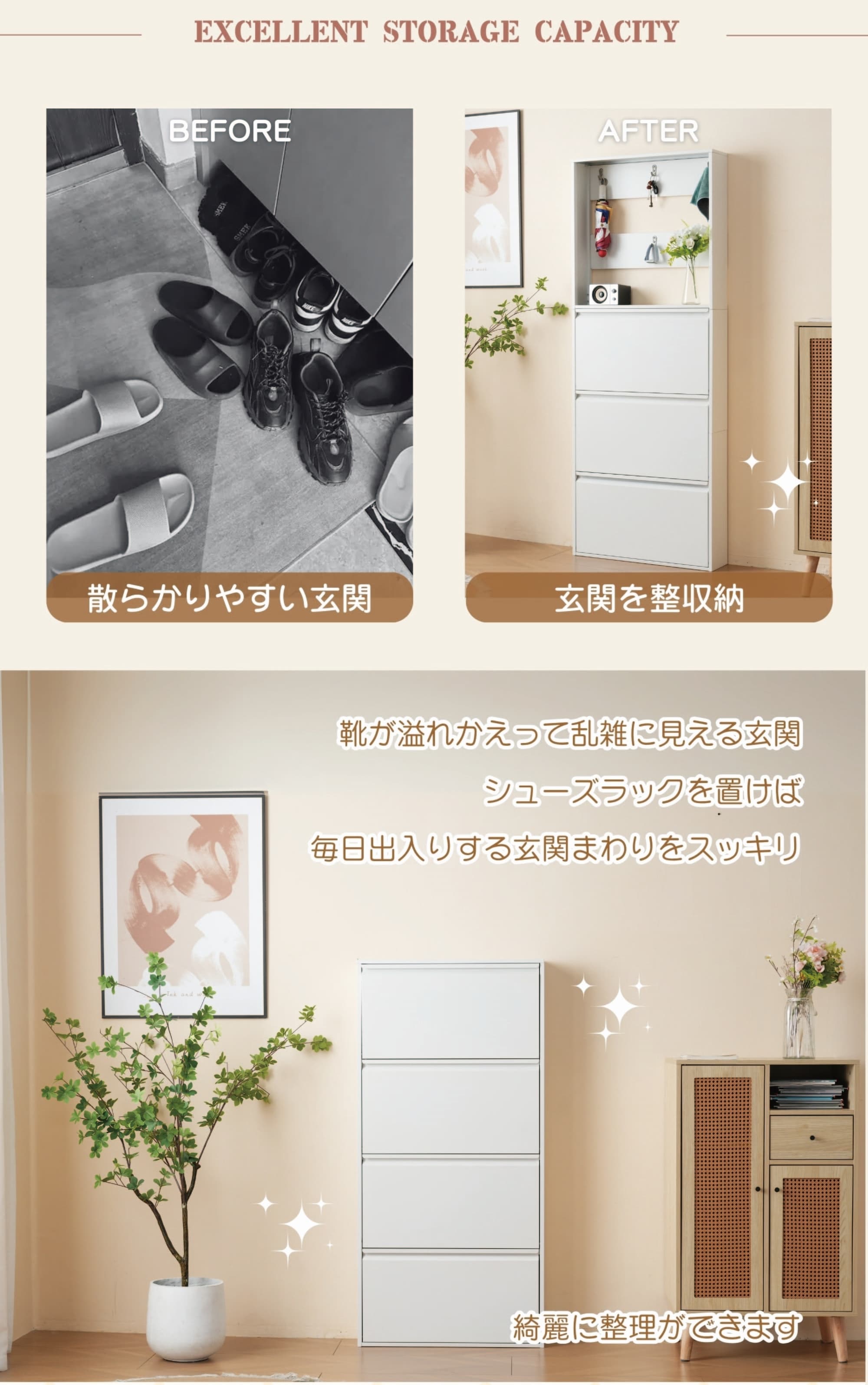 シューズボックス スリム 薄型 奥行1 3段ラック 3段ラック-棚付き 4段ラック 幅65cm 幅80cm