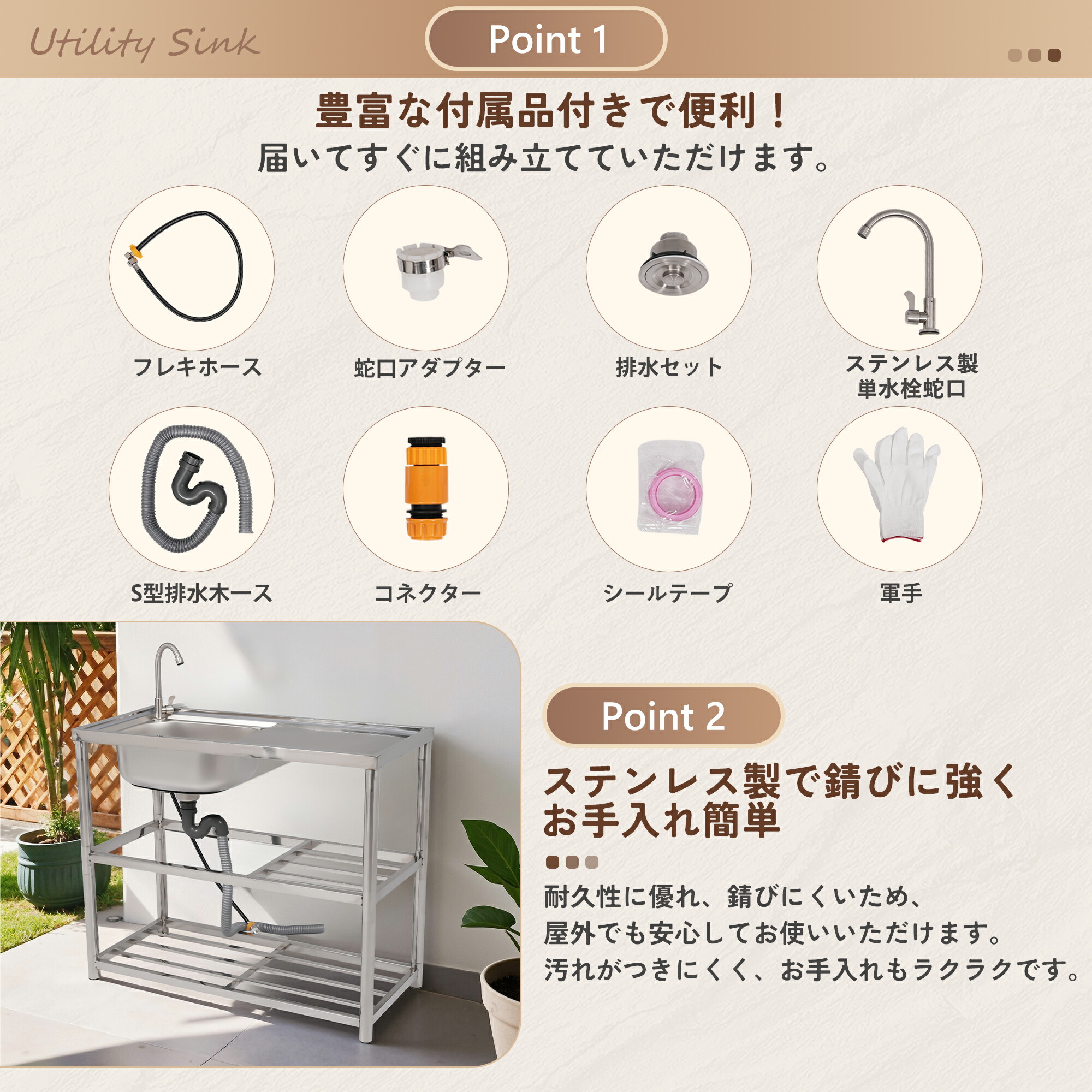 流し台 シンク 屋外 ガーデンシンク 幅80cm 幅100cm