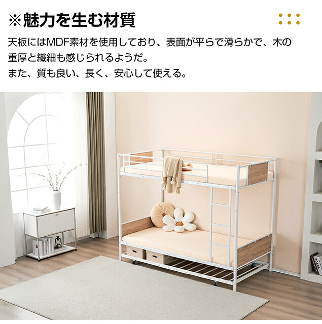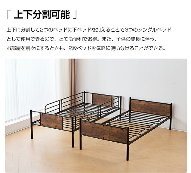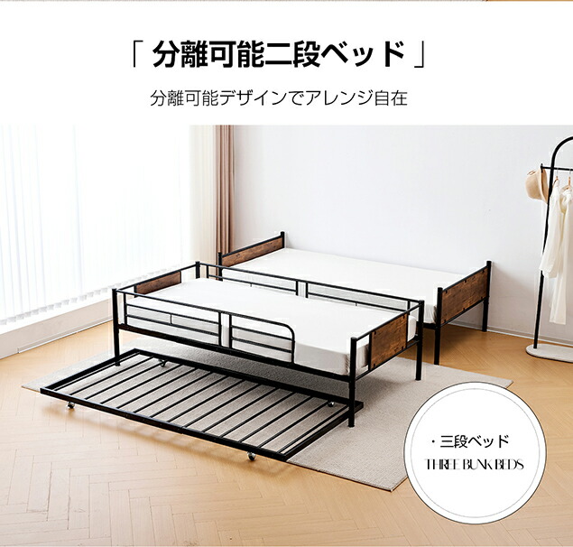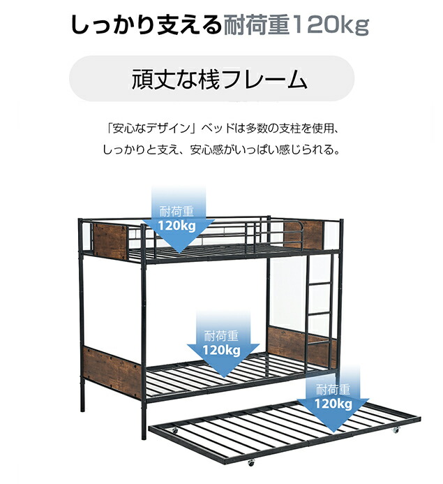 三段ベッドシングル パイプベッド 耐荷 ホワイト ブラック