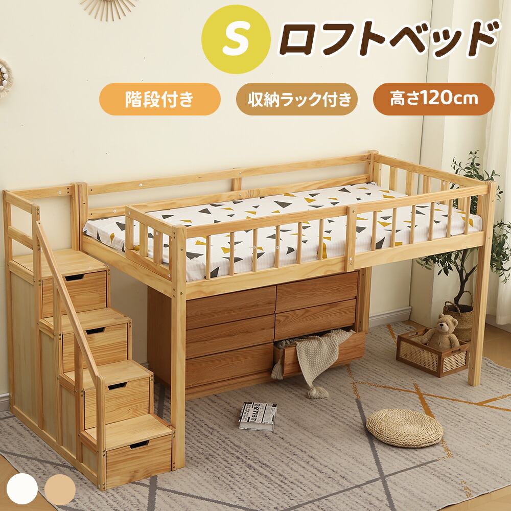 ロフトベッド 子供用 木製 シングル ナチュラル ホワイト