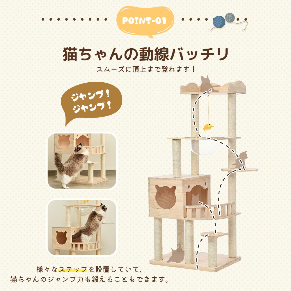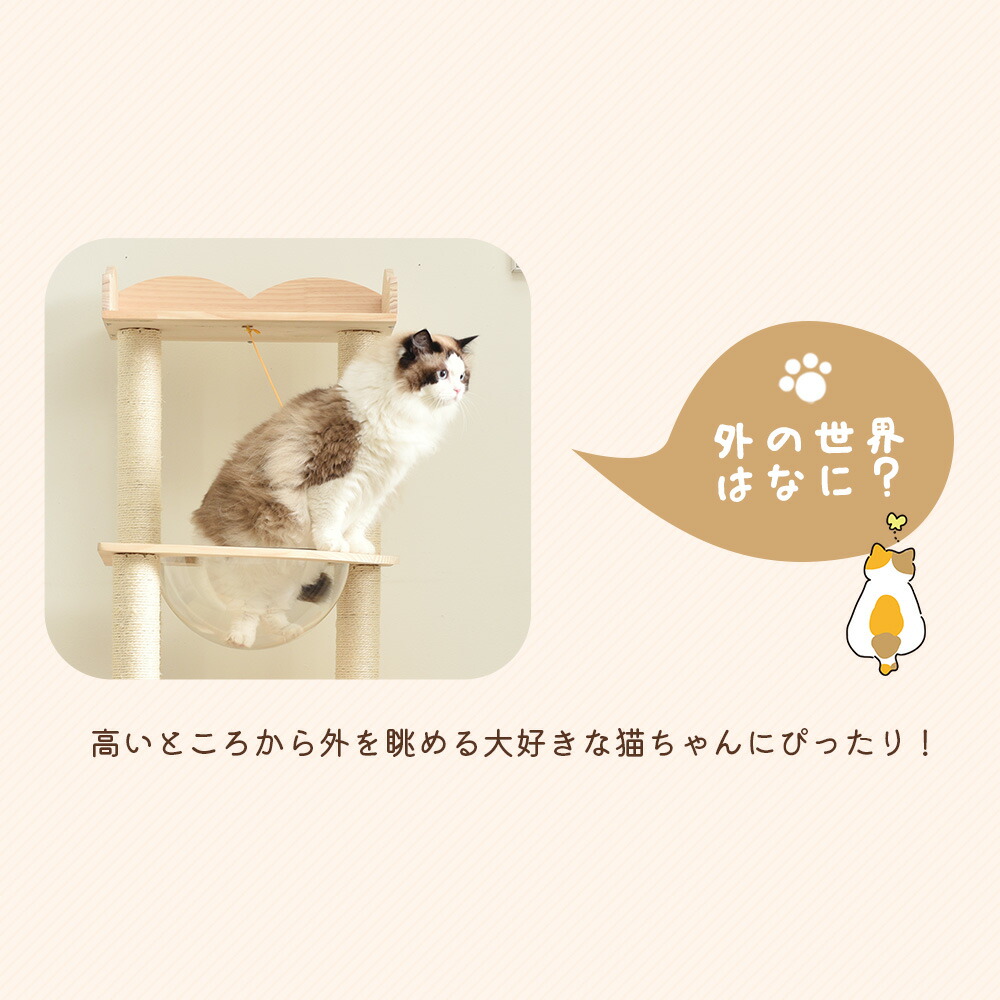 キャットタワー 据え置き 木製 宇宙船付き 多頭飼い 高さ147cm 安定感抜群 猫タワー 展望台 隠れ家 季節問わず 天然木 階段 機能満載 爪とぎ 頑丈 猫ハウス 上りやすい クリアボ 省スペース