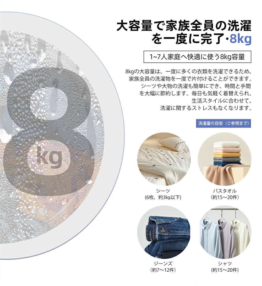 洗濯機 全自動洗濯機 縦型 8kg 8キロ キレイ タイマー コンパクト 一人暮らし 大型洗濯機 節電 ステンレス槽 まとめ洗い 縦型洗濯機 ホワイト 部屋干し 洗濯 引越し 単身 家電 洗濯物きれい