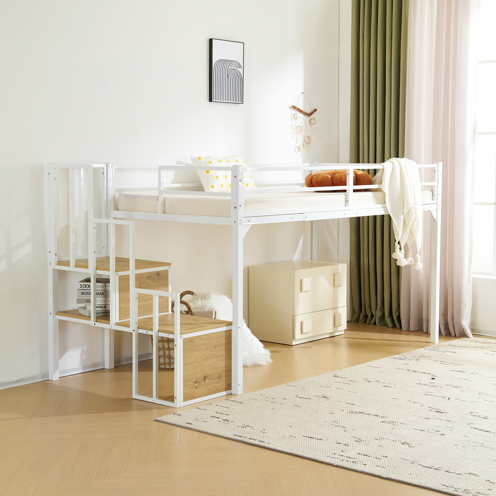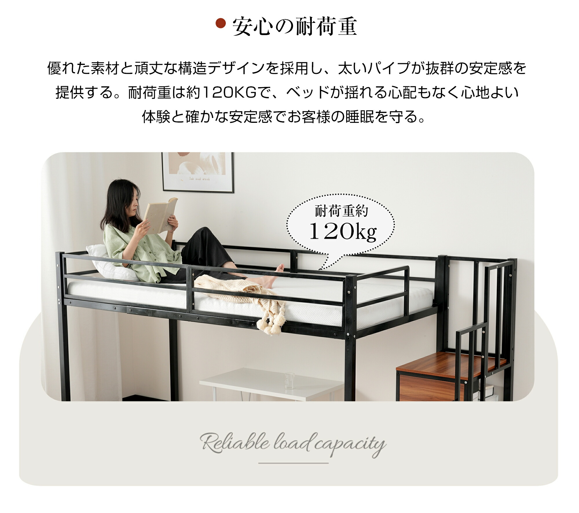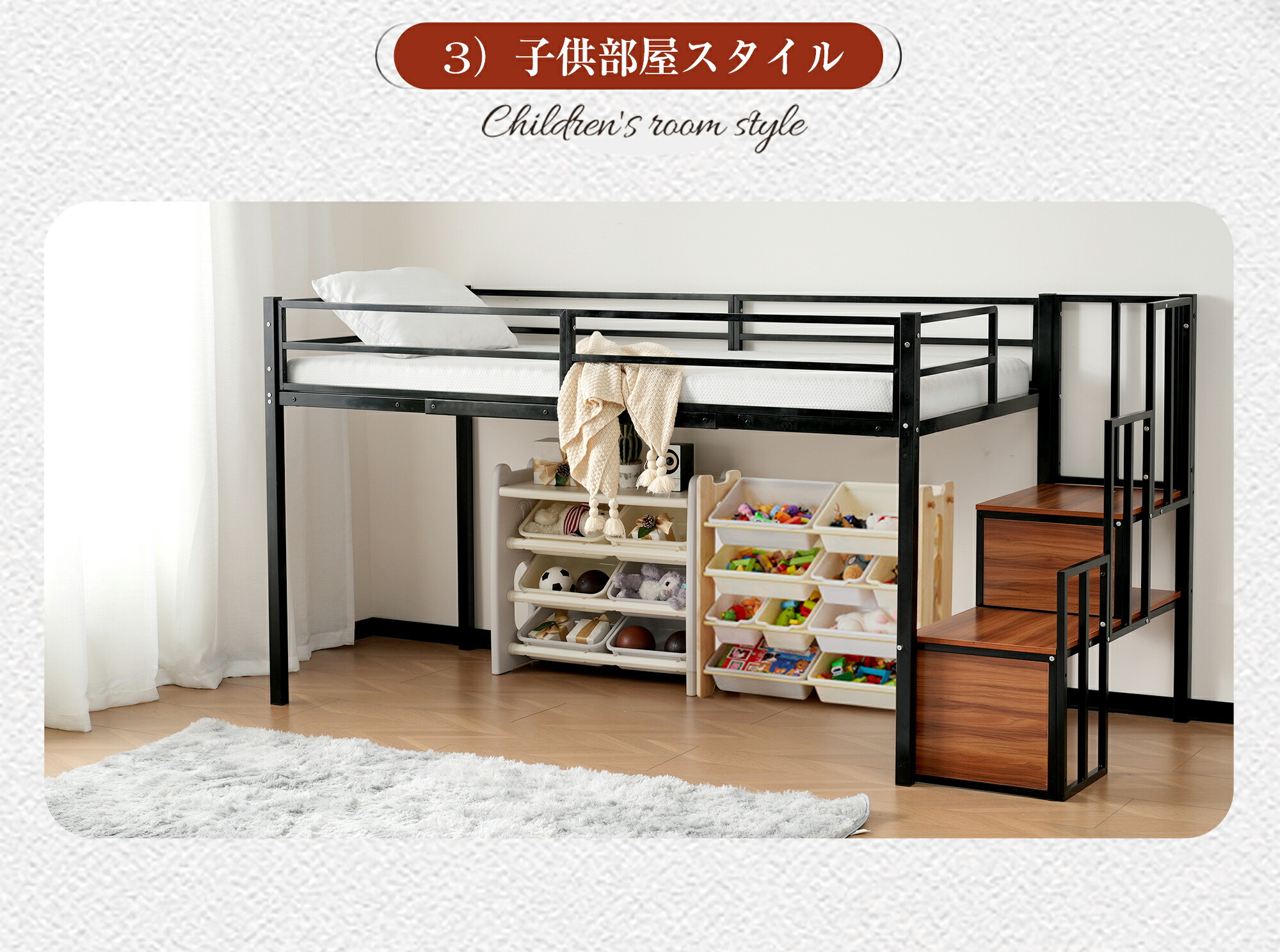 ロフトベッド 階段付き パイプベッド シングル セミダブル ブラック ホワイト
