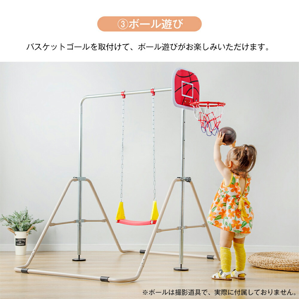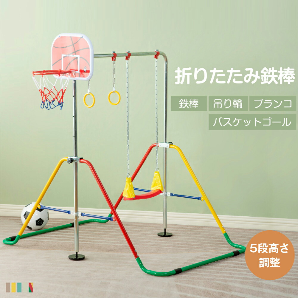 鉄棒 室内 ブランコ 折りたたみ 屋外高さ5段階調整 子供用 家庭用 鉄棒練習 ぶらさがり チンニング キッズ 子供の日ギフト おもちゃ 吊り輪付き 有酸素運動 女の バスケットゴール付き