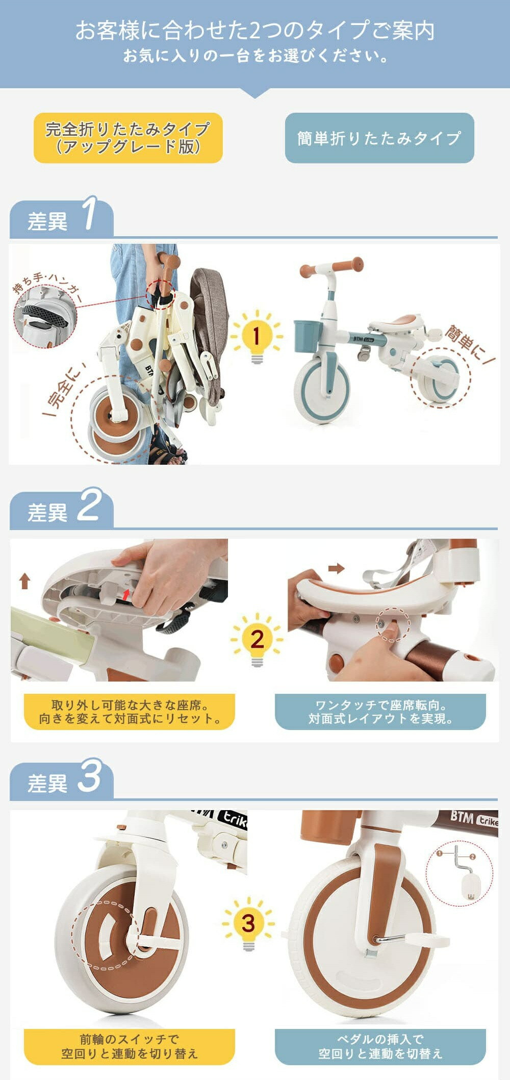 子供用三輪車 折りたたみ かじとり 手 おもちゃ 乗用玩具 三輪車 三輪車 人気 車体完全折りたたみタイプ(NEW) 車体簡単折りたたみタイプ 車体完全折りたたみ(NEW)+カバー 車体簡単折りたたみ+カバー ベージュ×ブラウン ブルー×ブラウン ライトグリーン ブラウン ピンク リーフグリーン パープル イエロー