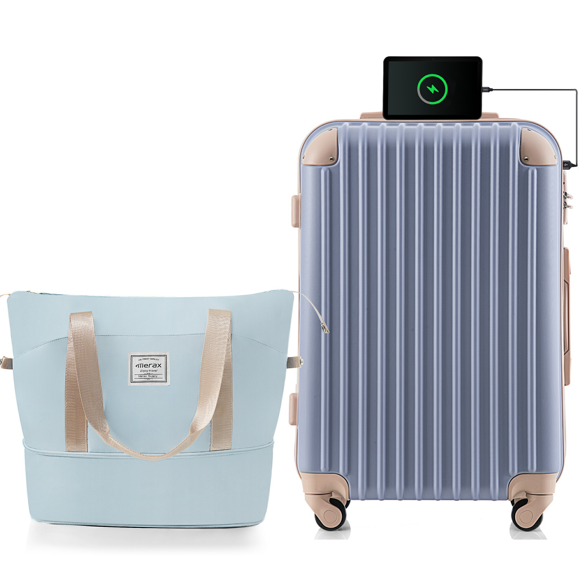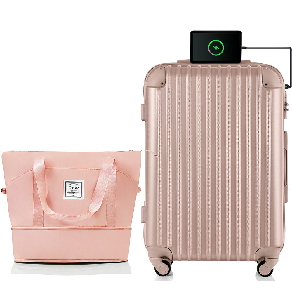 スーツケース Mサイズ 軽量 キャリー バッグ 小物 ブランド雑貨 人気 Mサイズ Mサイズ+バッグ A01 A02【USBポート付き】