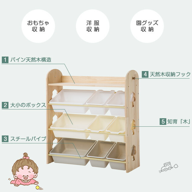 おもちゃ収納 天然木 ボックス ラック