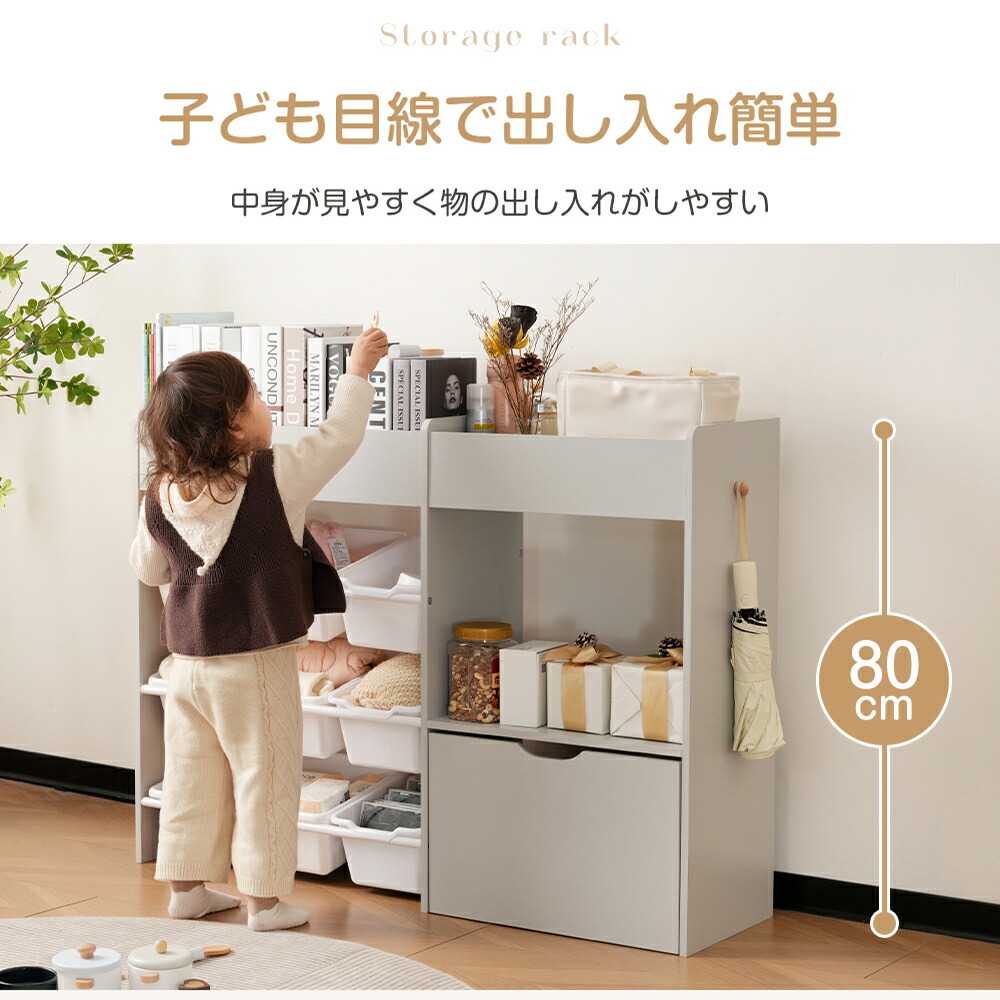 おもちゃ収納 ラック コンパクト 木製 【標準型】ホワイトボードなし 【新型】ホワイトボード付き グレー ホワイト