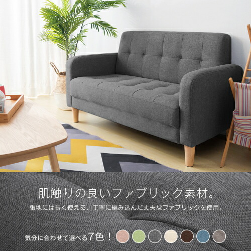 ソファー 2人掛け 肘付き 天然木脚 ベージュ グレー ネイビー ライトグレー ブラウン ピンク ベージュPVC ブラックPVC グリーン