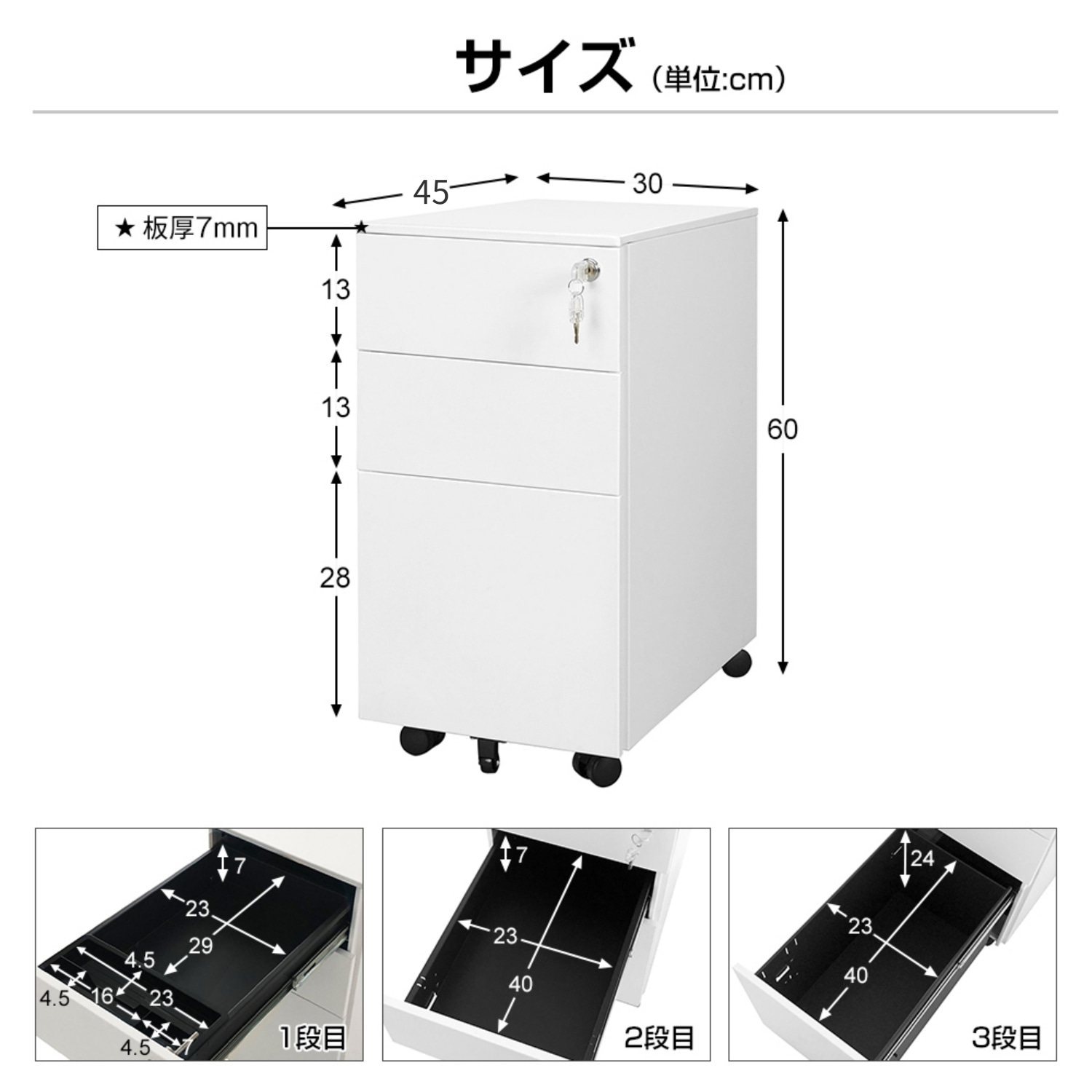 スリムワゴン 3段 デスクワゴン サイ ホワイト ブラック