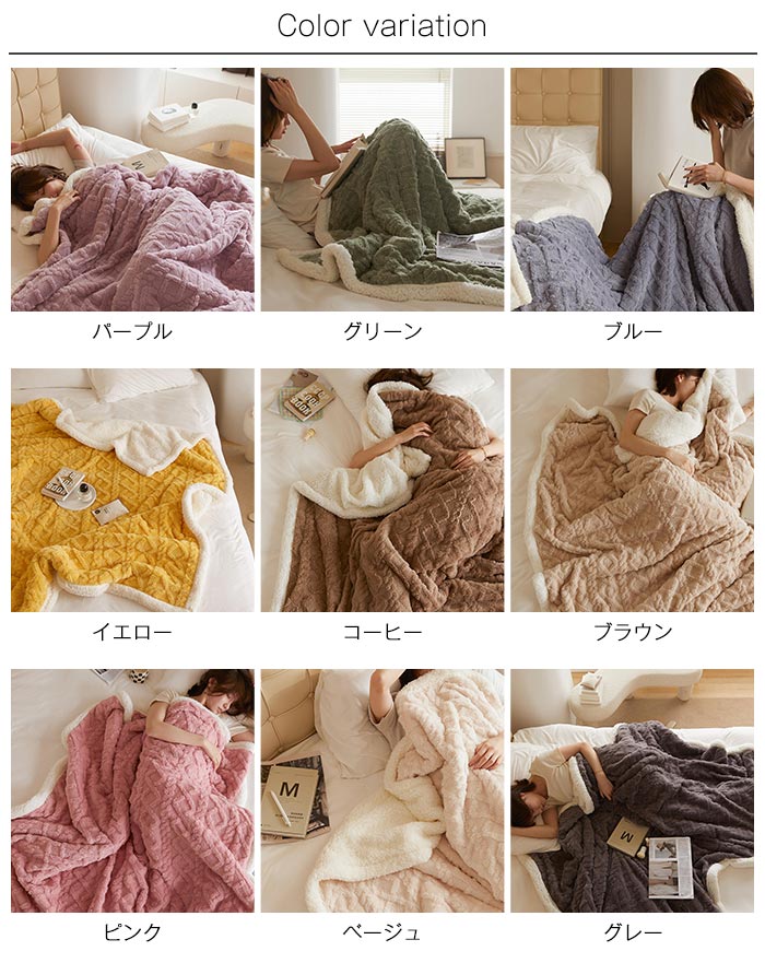 毛布 ブランケット ボア 膝掛け 肩掛 インテリア 寝具 収納 早い者勝ち パープル グリーン ブルー イエロー コーヒー ブラウン ピンク ベージュ グレー