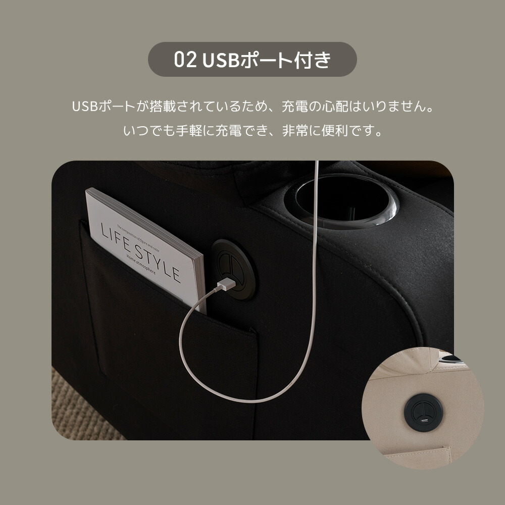 スマホ充電可とカップホルダー付き リク ベージュ キャメル ダックグレー ブラック