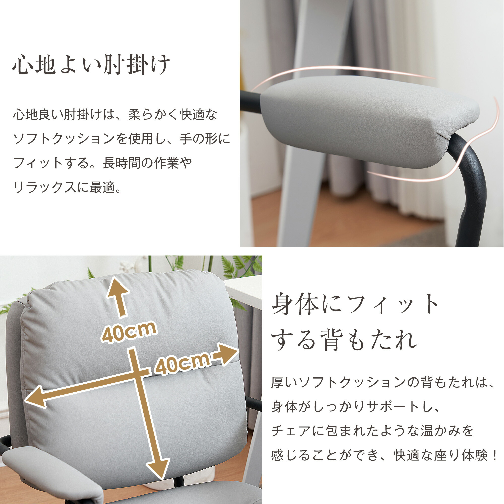 オフィスチェア PUレザ 疲れにくい 肘あり 回転式 静音キャスター 超肉厚 在宅ワーク おしゃれ 椅子 ダイニングチェア チェア 学習 シンプル ワーク 3色 大人 高級感 事務椅子 子供